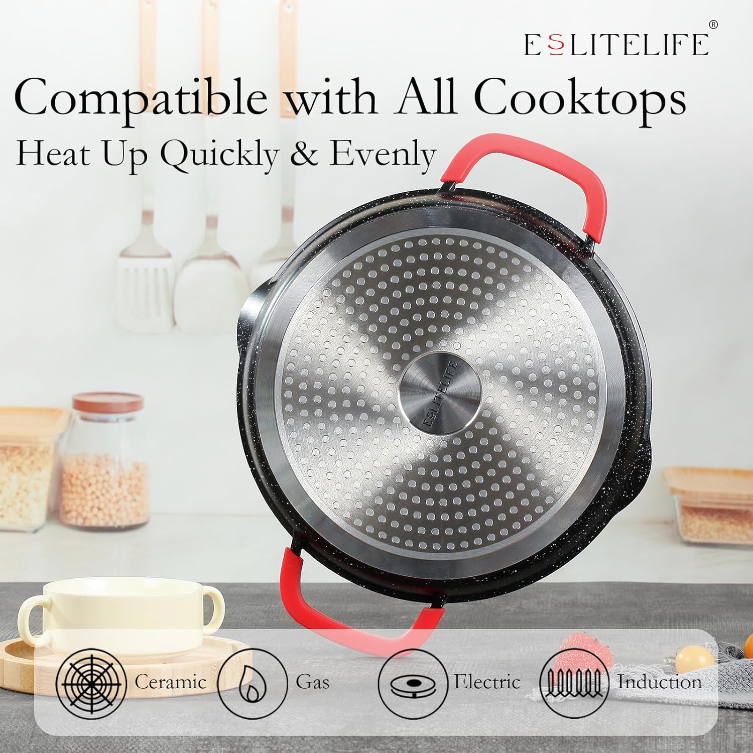 - Compatible with All Stovetops - Design with perfect magnetized base makes it rapid heat transfer and long-time use, used effectively on gas, ceramic, electric, and induction stove tops, made for any kitchen and cooktop, an ideal replacement solution for your aging, worn out, or failed cooking equipment.