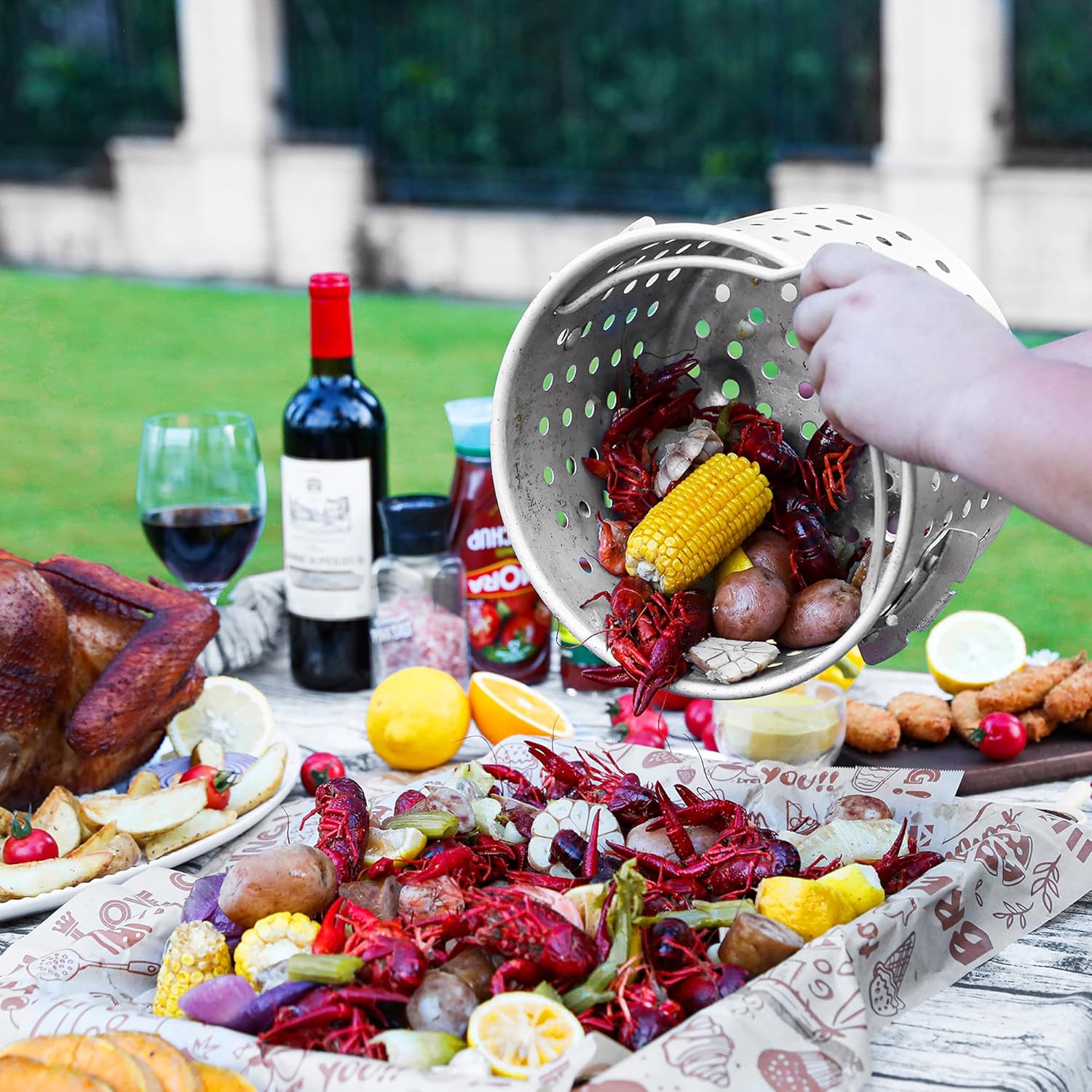 - Combo Design: 30 Qt. turkey fryer pot with basket and burner can deep fryer turkey and fish in all aspects, remove the basket to boil soups and stews. Seafood Boiler Function : Perfect as crab boil,large fish fryer,chicken scalder, lobster pot, crawfish boil