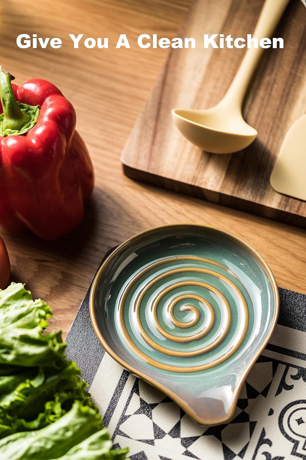 LAUCHUH Spoon Rest for Kitchen Counter,5" Spoon Holder for Kitchen Counter Stove Top Ceramic Spatula Holder for Ladle, Spatula, Spoons or Tongs, Thanksgiving Gifts, Unique Green