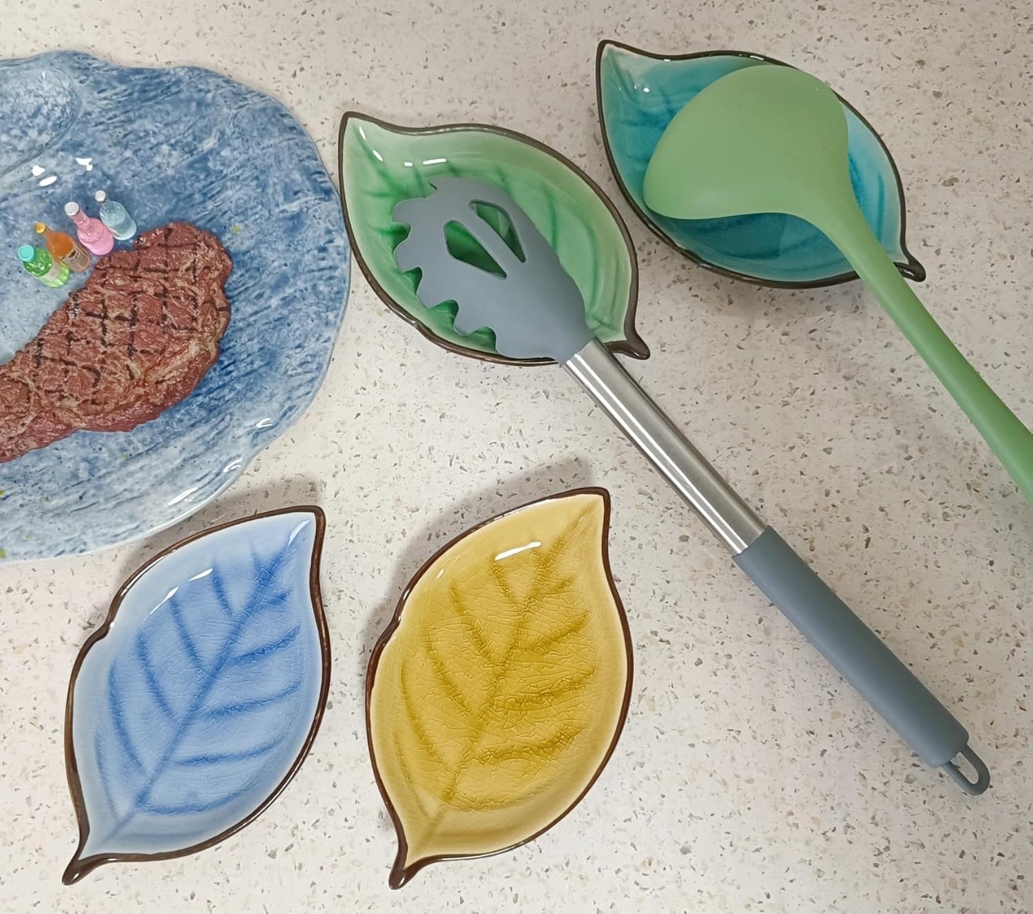 - š ćDesigned and Decorativeć: The ceramic spoon rest for stove top is leaf shaped with ice cracks. The unique designed spoon rest cute is perfect addition and decoration to your kitchen counter, stove top, coffee bar and dinning room.