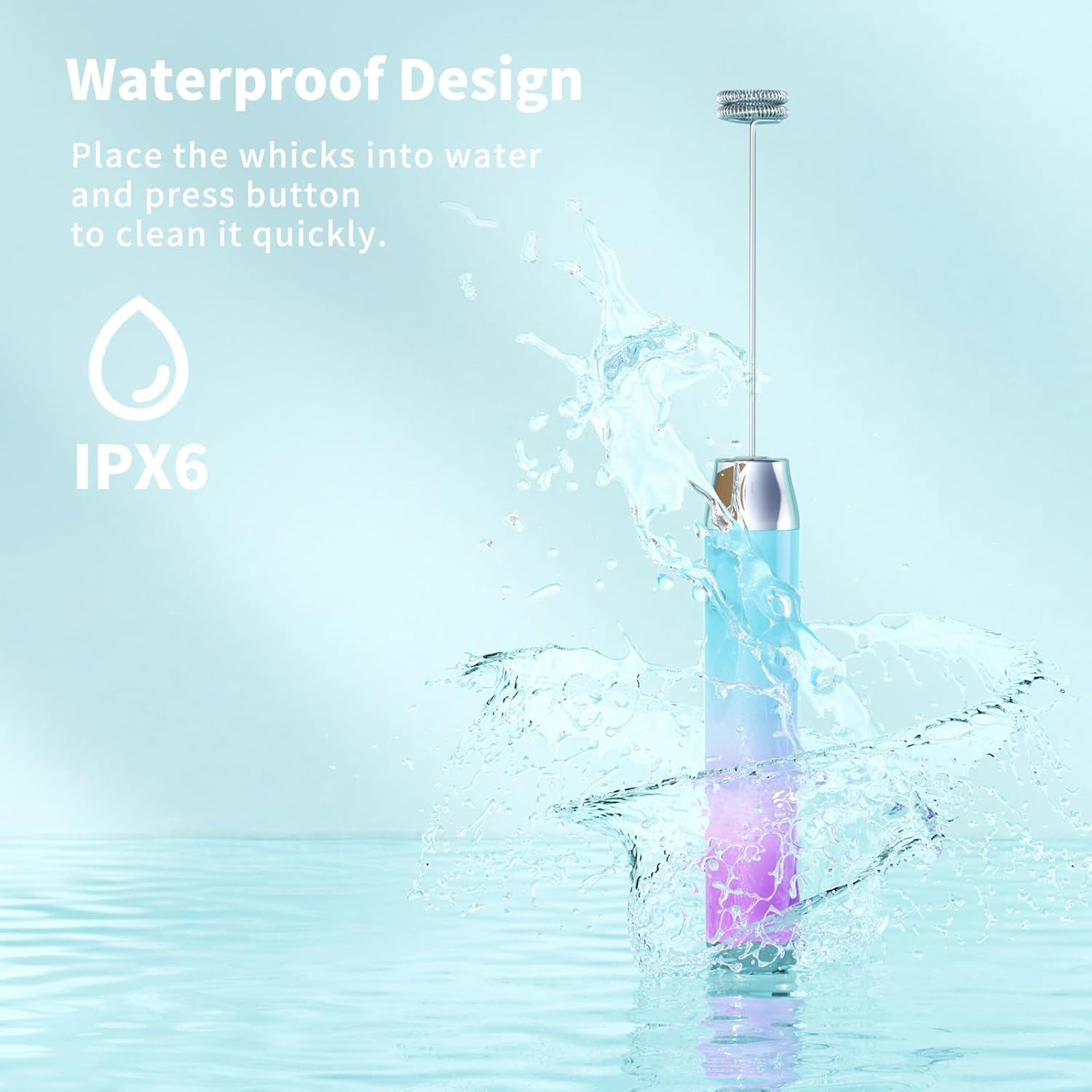 Maestri House Rechargeable Milk Frother with Stand, LunaFro Handheld Electric Foam Maker Waterproof Detachable Stainless Steel Whisk Drink Mixer Foamer for Lattes, Cappuccino