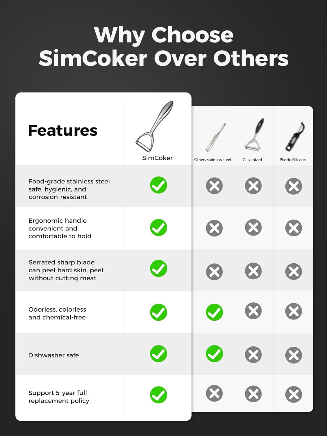 - 5-Year Warranty & 100% Satisfaction:Includes a 5-year warranty and satisfaction guarantee. Peels fruits and vegetables smoothly, ensuring a hassle-free cooking experience