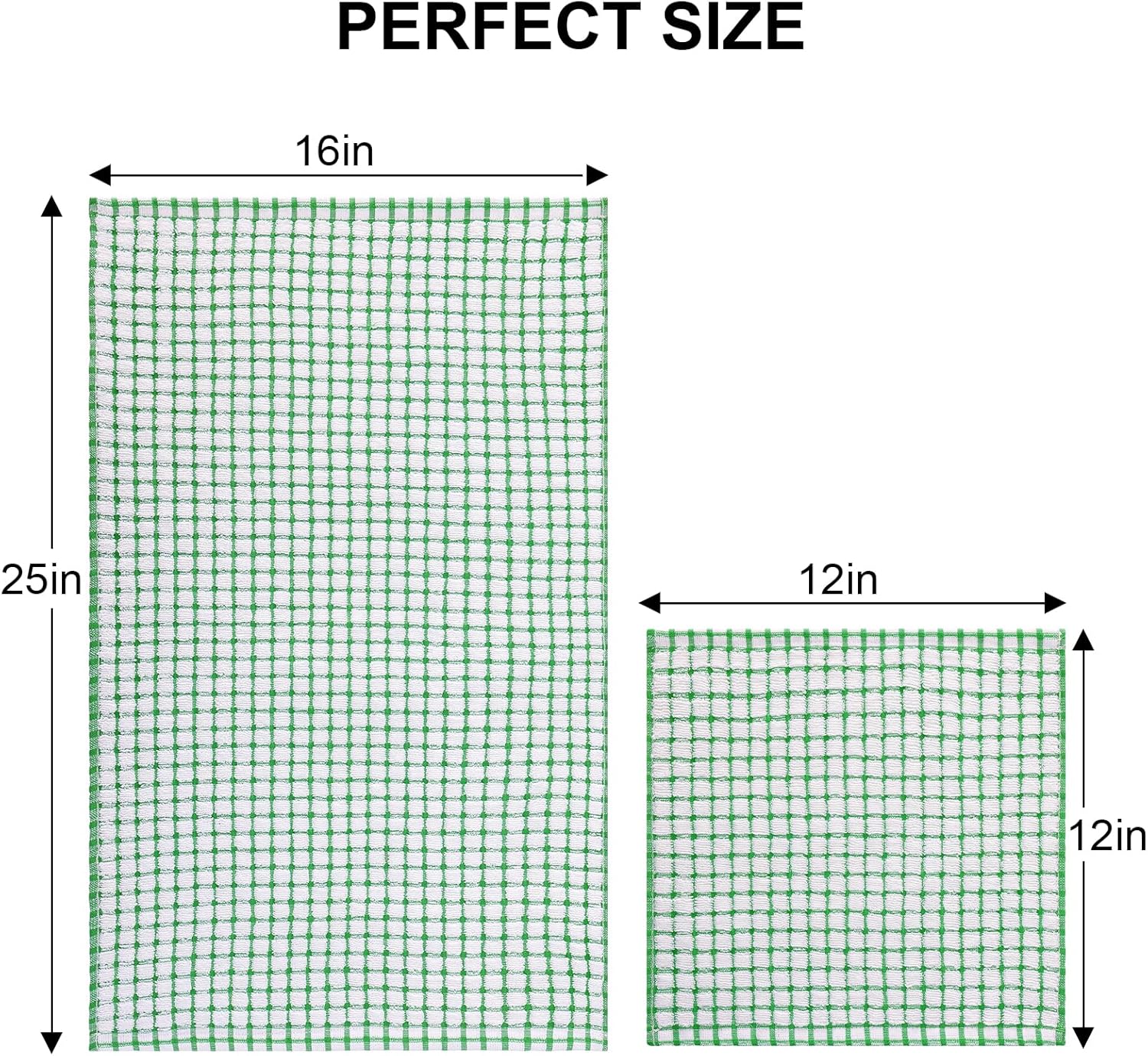 Kitinjoy Cotton 12 Pack Kitchen Towels and Dishcloths Sets, 16 x 25 Inch & 12 X 12 Inch Dish Towels Bulk, Super Soft and Absorbent Hand Towels for Kitchen Drying, Green