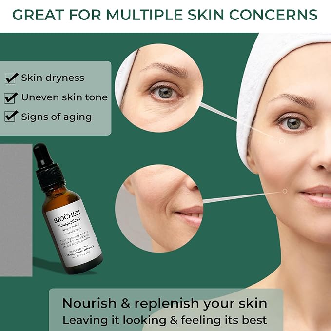 BIOCHEM Nonapeptide-1 Brightening Serum–Dark Spot Corrector & Melanin Inhibitor Ampoule for Even Skin Tone & Natural Glow– Anti-Aging Peptide Treatment for Face & Neck,1.01 fl oz/30 mL