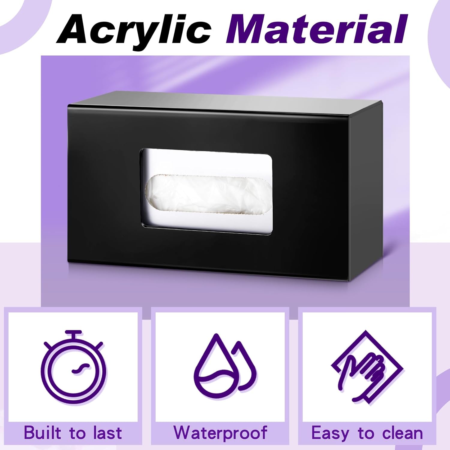 - Easy Replacement: the acrylic glove box holder can be loaded and refilled from the side; When the glove in the box is applied up, just slide it out of the holder and insert a new one, convenient and quick