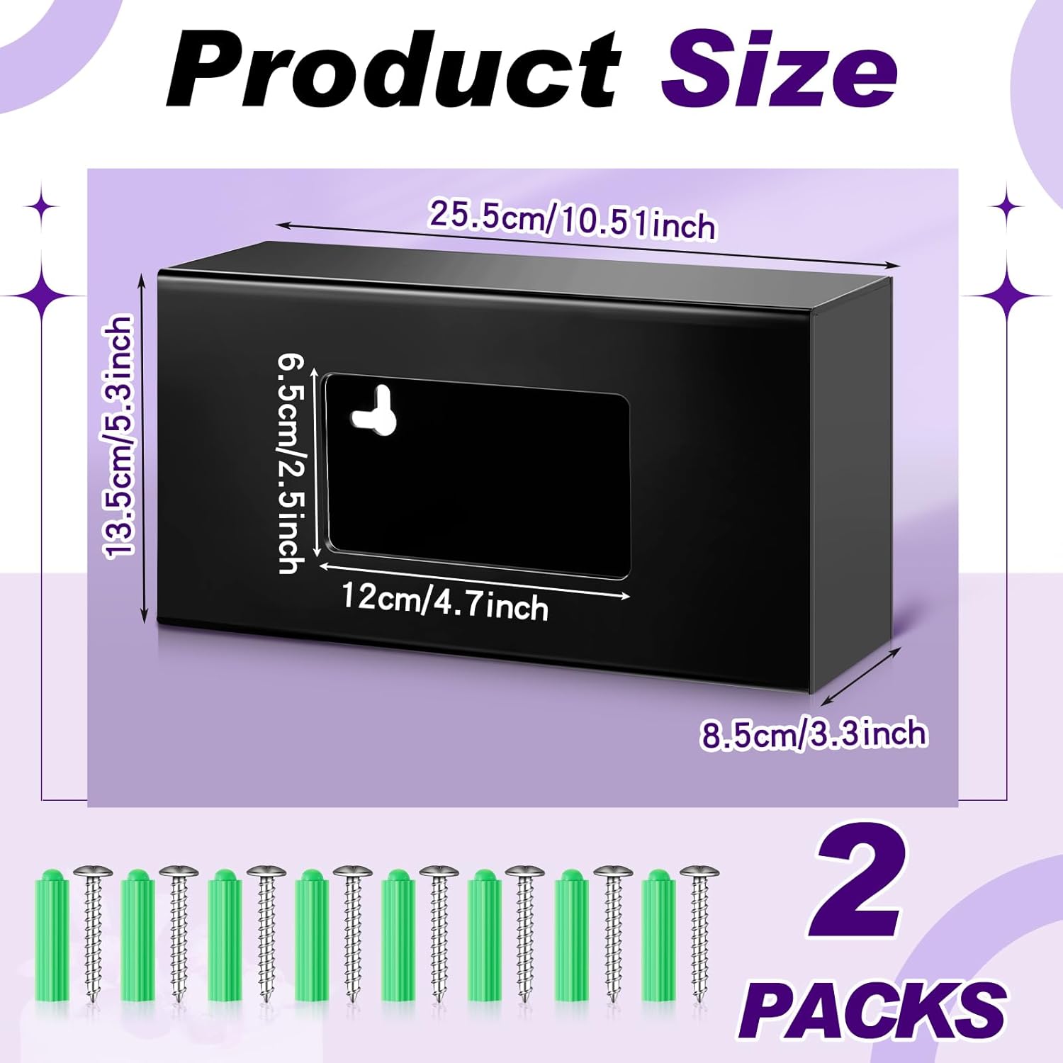 - Quantity and Size: you will get 2 black acrylic glove holders, measuring about 10 inches/ 25.5 cm in length, 5.3 inches/ 13.5 cm in width, 3.3 inches/ 8.5 cm in height, and the inner dimensions are about 9.95 x 5.25 x 3.3 inches, which fits most standard sized rectangular glove boxes; Note: it does not include gloves or glove box