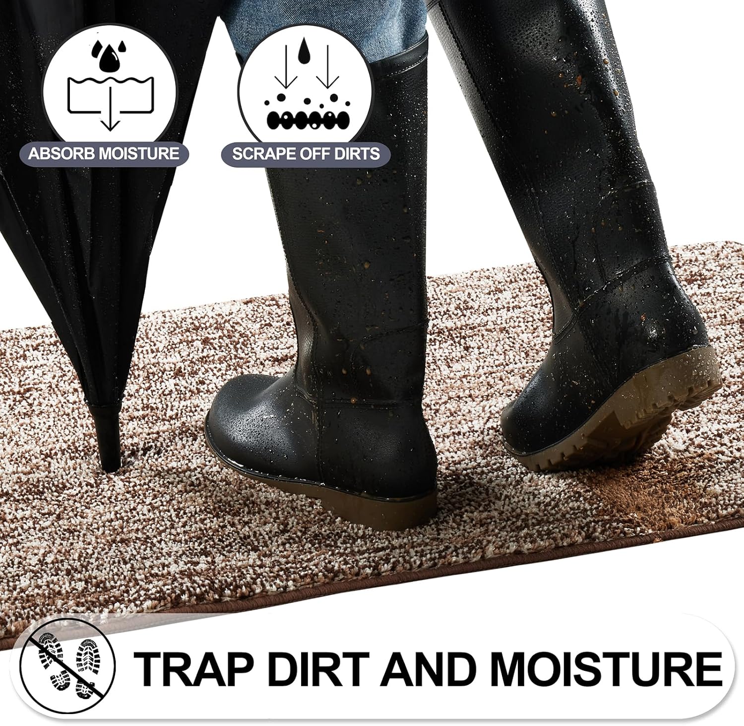REFETONE Indoor Doormat, Front Door Mat 32"x40" Absorbent Rubber Backing Non Slip Door Mats, Washable Low-Profile Inside Floor Mat Door Rugs for Entryway, Resist Dirt Mud Mat for Dogs, Coffee/Brown