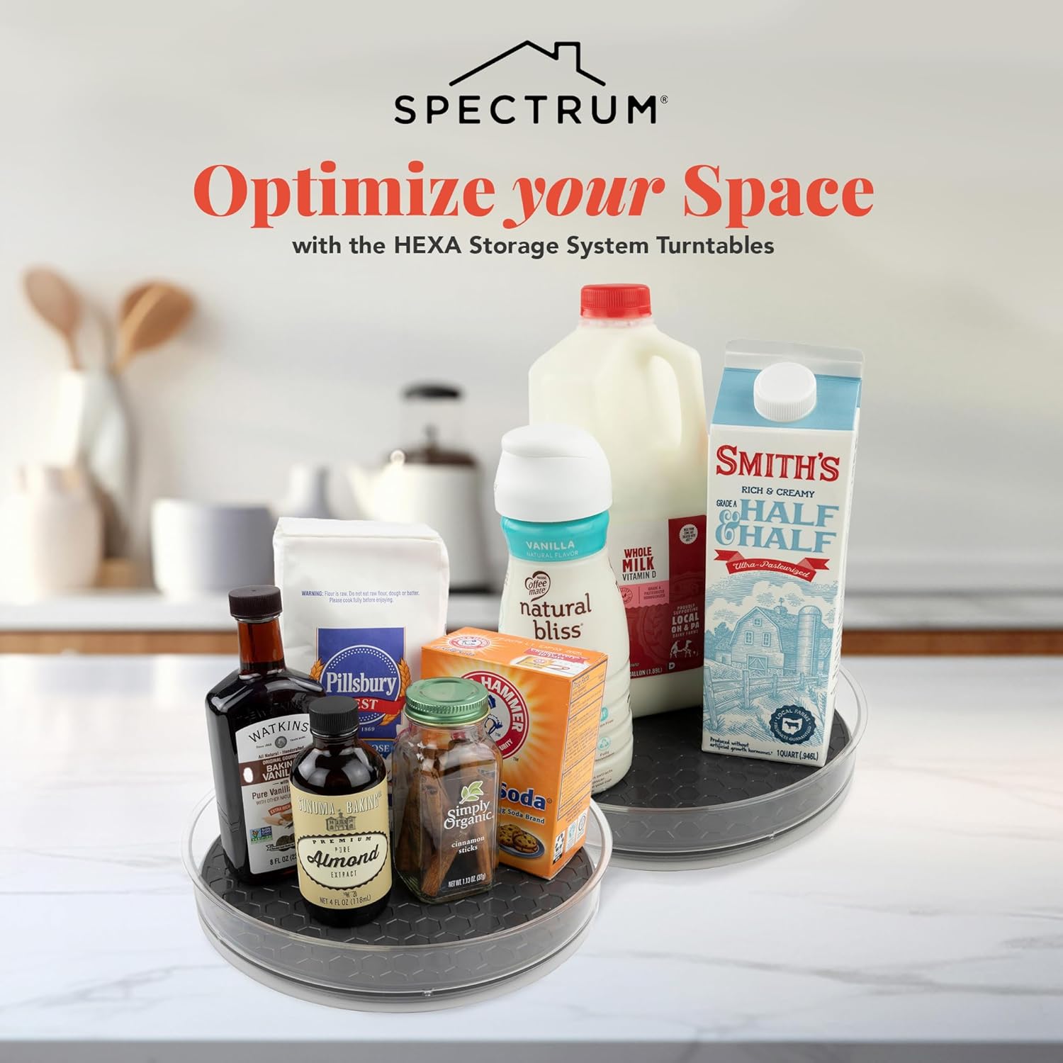 Spectrum Medium Lazy Susan Organizers 9.5 in Pack of 2 for Cabinet Pantry Table Rotating Kitchen Storage Spice Rack Fridge Organization, Charcoal Gray Spinning Turntable for Sauces Jams Condiments