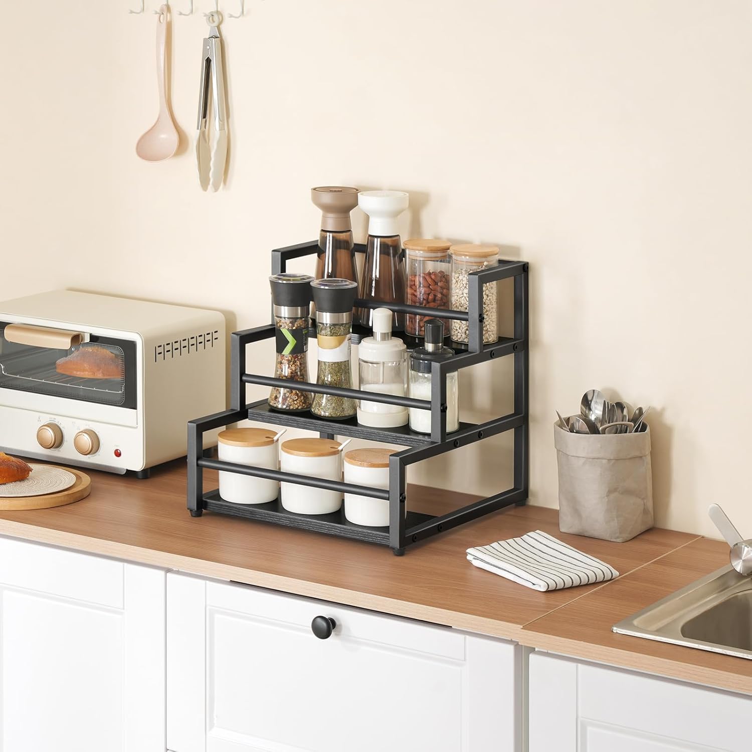 - Easy Organization: This storage shelf provides ample space, accommodating up to 12 syrup bottles (750 ml). You can neatly organize your favorite coffee syrups, making it easy to find the flavors you want without rummaging through cluttered cabinets
