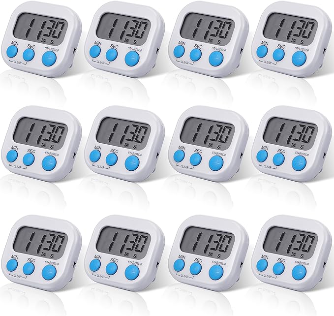 • Digital timer set: the package includes 12 pieces of digital kitchen timers in white colors, with a time up to 99 mins 59 secs, enough quantity to meet your needs for daily life use and replacement; 1 AAA battery is needed
