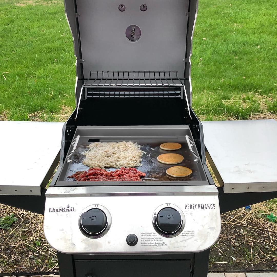 - 【Transform your grill into griddle】 Enjoy the best of both worlds by transforming your Charbroil Grill into a griddle in a matter of seconds. Simply remove your cooking grates and replace them with griddle insert to create food never thought possible in a grill, such as pancakes, eggs, fajitas and more. Heats your food evenly for great taste. Let you and your family enjoy BBQ more!