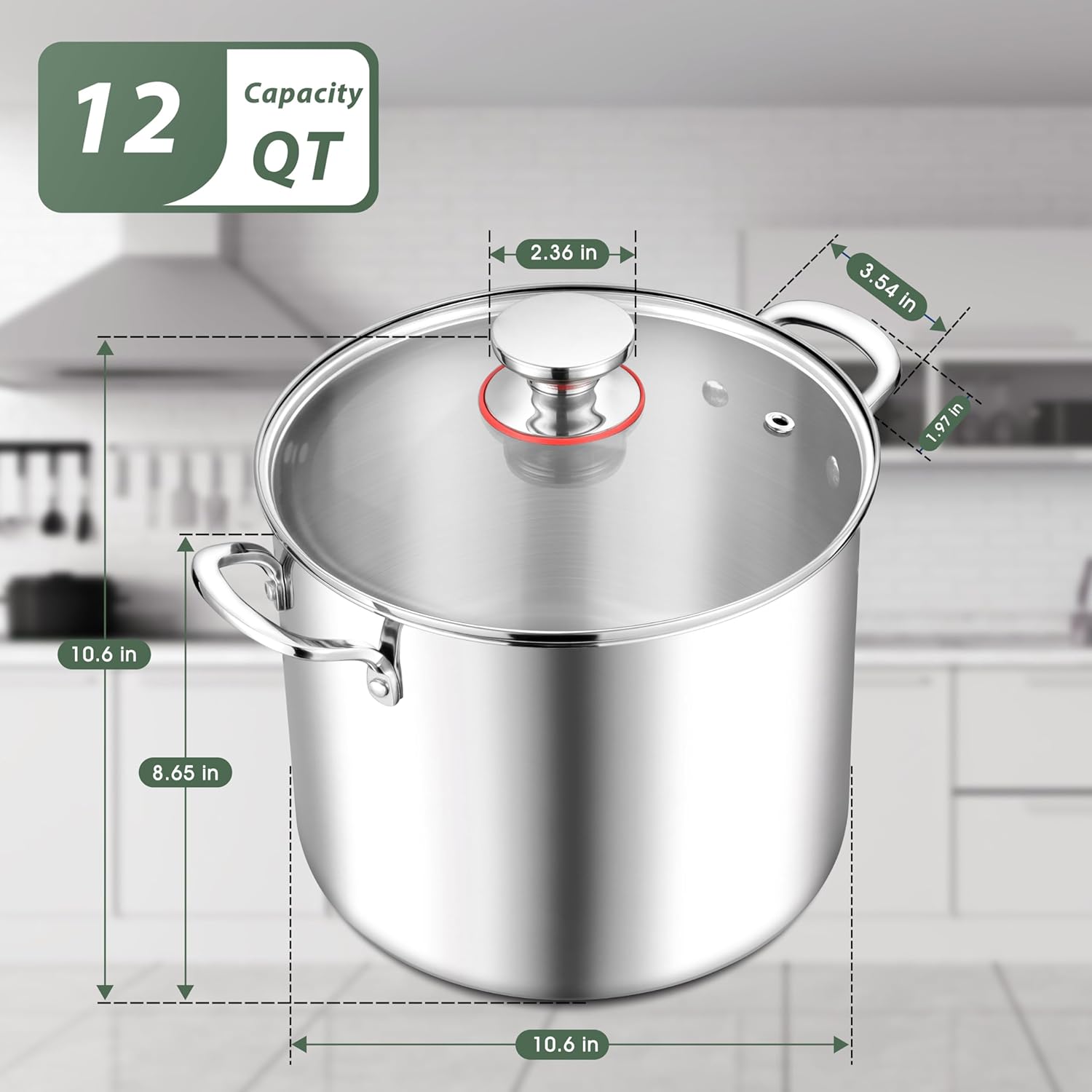 - Riveted Handles and Glass Lid, this stainless steel stockpot comes with a tempered glass lid with a steam vent to ensure thermal stability and view the food while cooking, together with durable riveted stainless steel handles, wear gloves when using to avoid burns