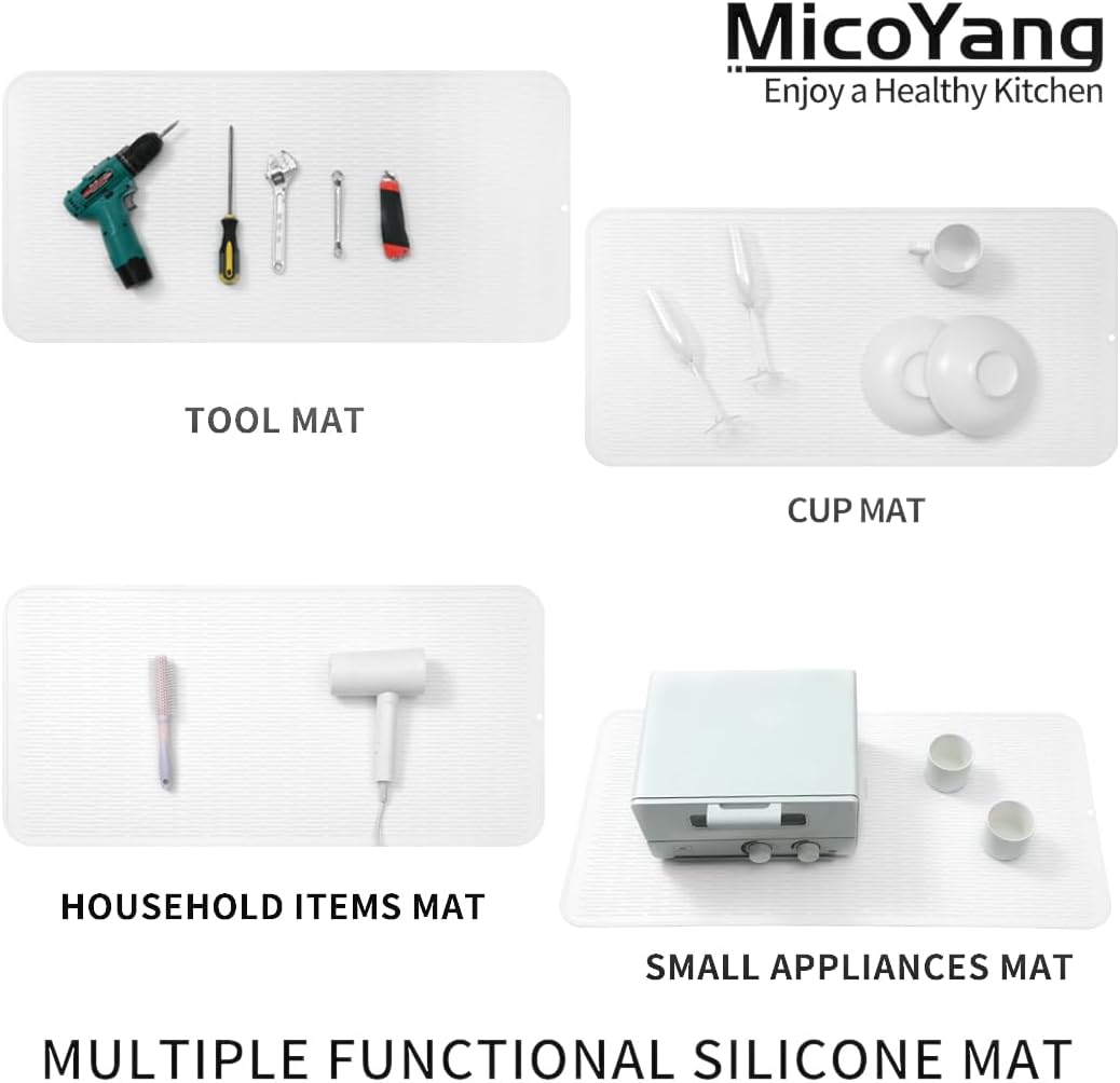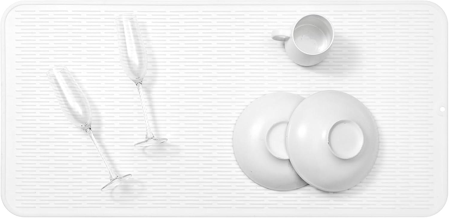 Silicone Dish Drying Mat for Multiple Usage,Easy clean,Eco-friendly,Heat-resistant Silicone Mat for Kitchen Counter or Sink,Refrigerator or Drawer Liner White 5XL 36inches x 18inches