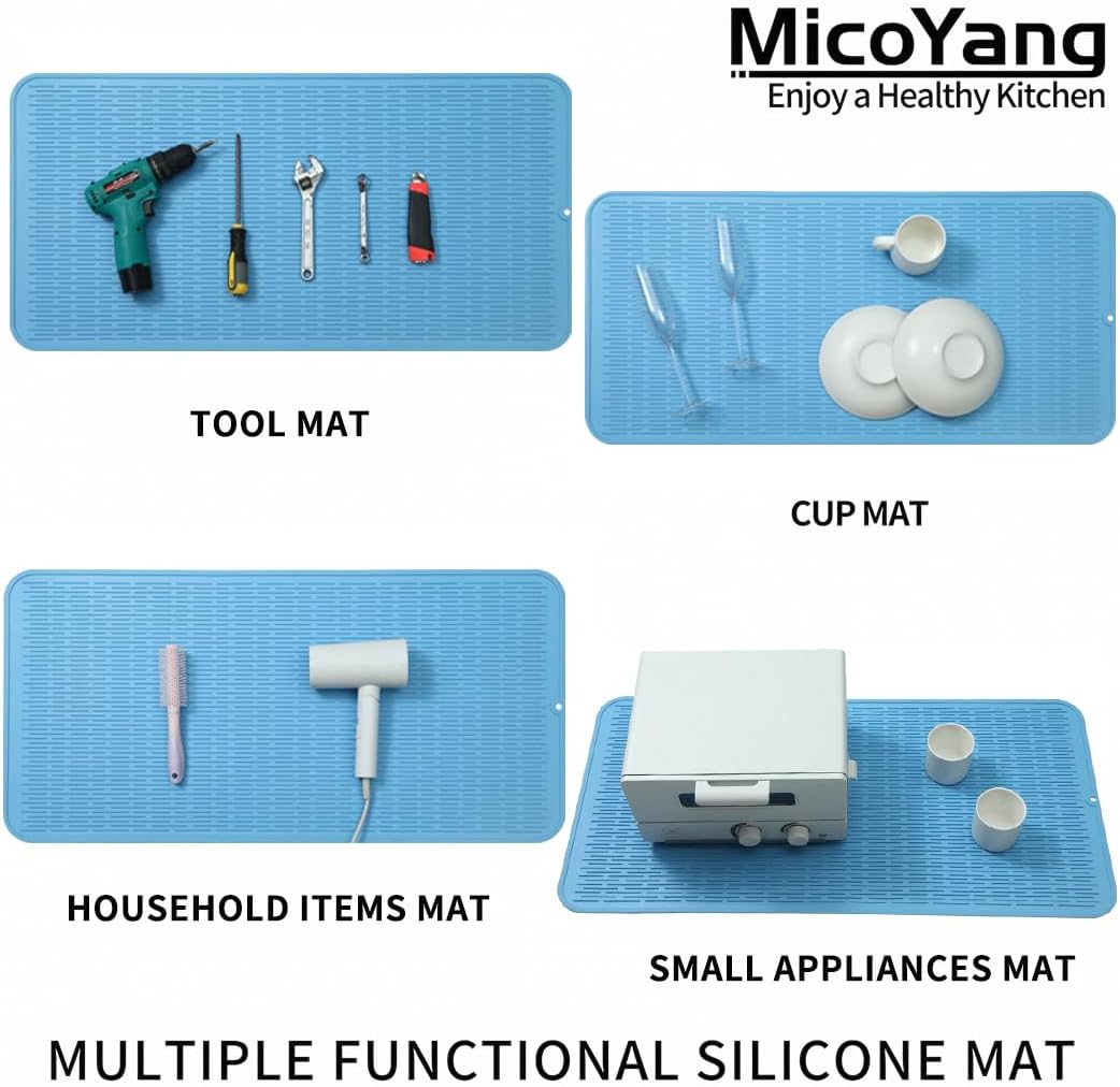 Silicone Dish Drying Mat for Multiple Usage,Easy clean,Eco-friendly,Heat-resistant Silicone Mat for Kitchen Counter or Sink,Refrigerator or Drawer Liner Light Blue 5XL 36inches x 18inches