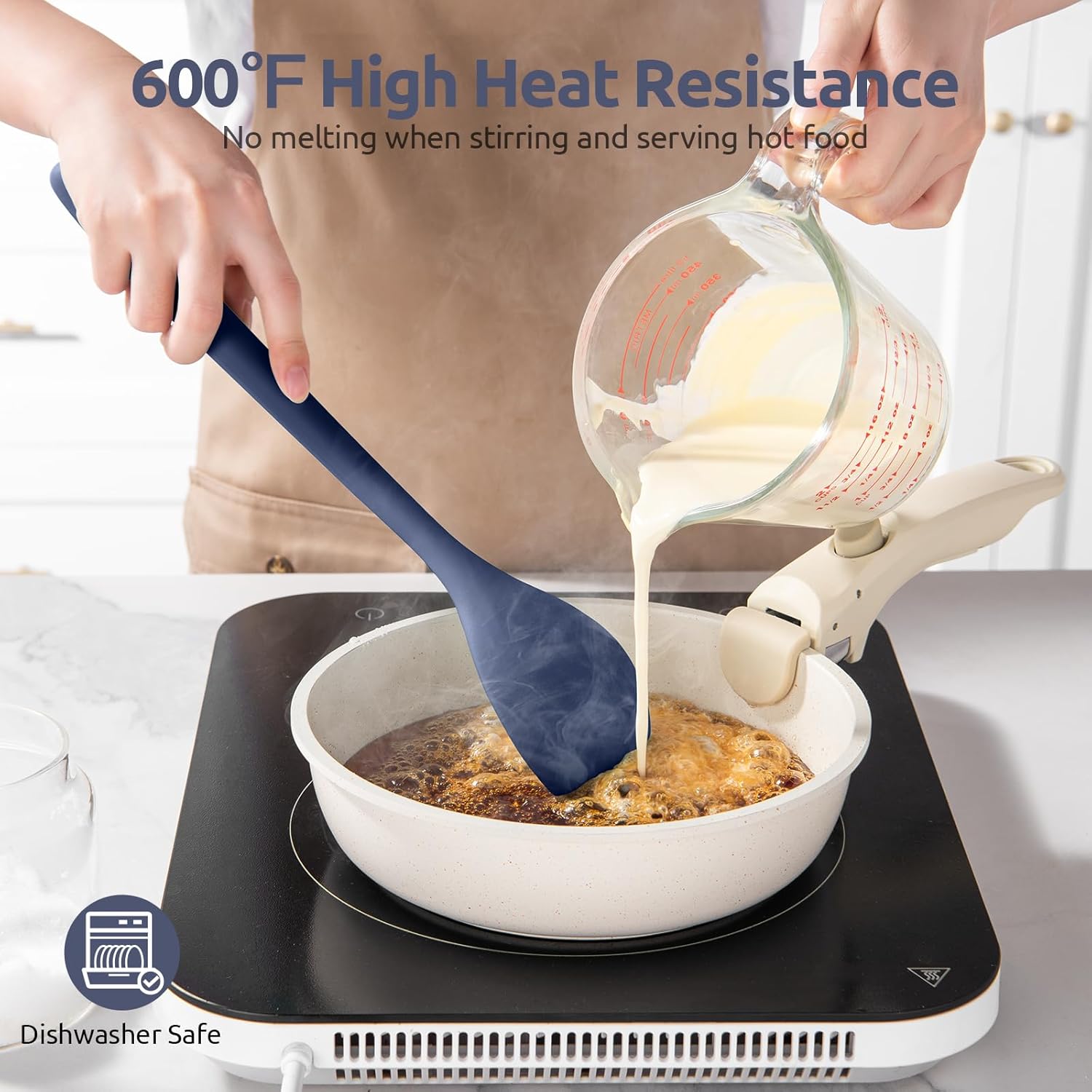 600ºF Heat Resistant Silicone Spoon: U-Taste 13.3in Solid Kitchen Cooking Spoon, Nonstick Food Grade Large Soup Rubber Utensil for Mixing, Serving, Stirring, Basting, for Pot Cookware (Midnight Blue)