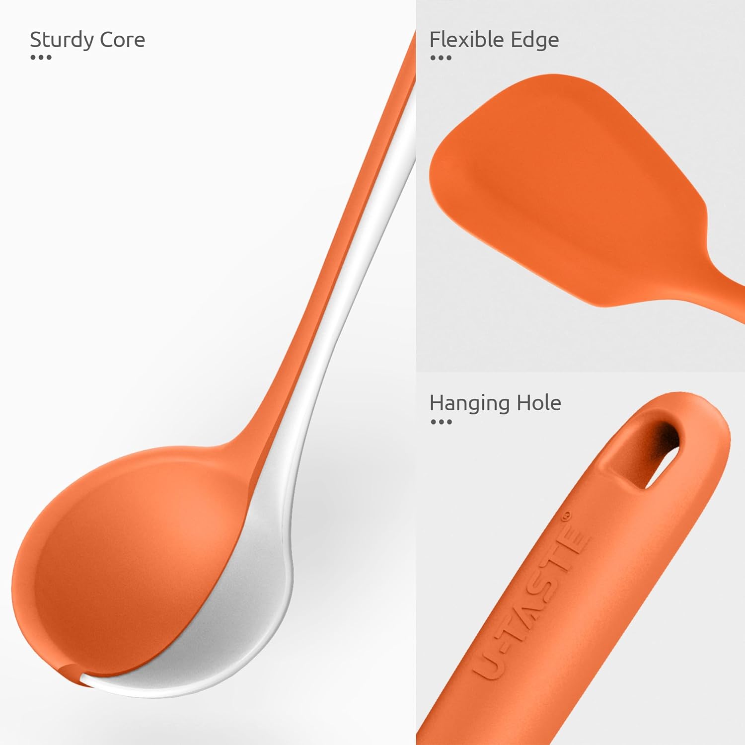 Silicone Kitchen Cooking Utensil Set: U-Taste 600ºF Heat Resistant 13.6in Extra Long Kitchen Tools, Food-Grade Non-Stick Spatula Turner Spoon Ladle for Stir Frying, Serving, Mixing (5 Pieces, Orange)