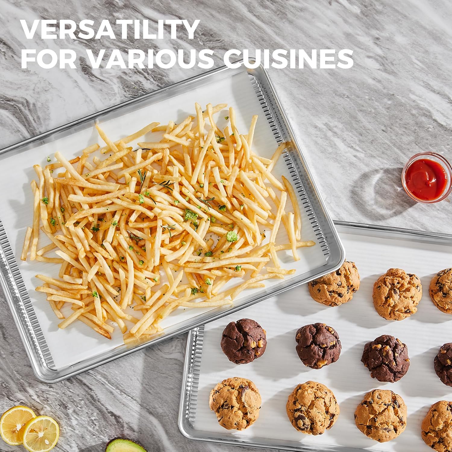 HONGBAKE Aluminum Cookie Sheets for Baking, 2-Pack Commercial Quality Half Sheet Pan, Baking Sheets Non Stick with 50 PCS Parchment Paper, 12.8 x 17.7 in, Silver