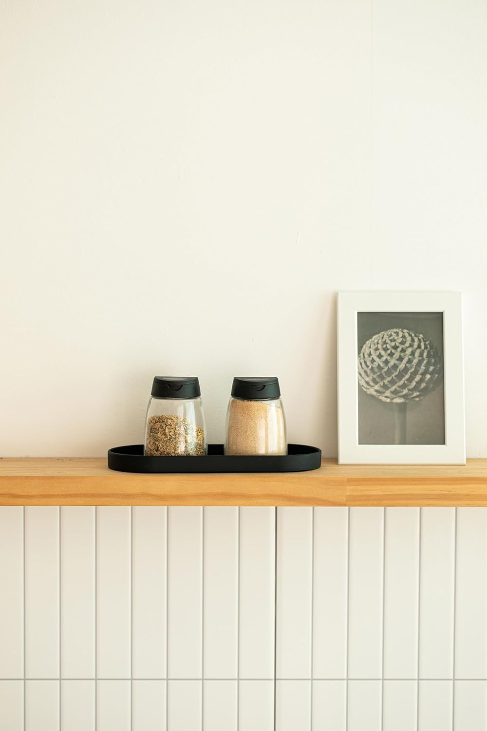 Lazy K Silicone Tray - Small Vanity Tray Organizer - Spoon Rest Holder - Kitchen Sink, Bathroom, Multi-Purpose Modern Counter Organizer (Black)