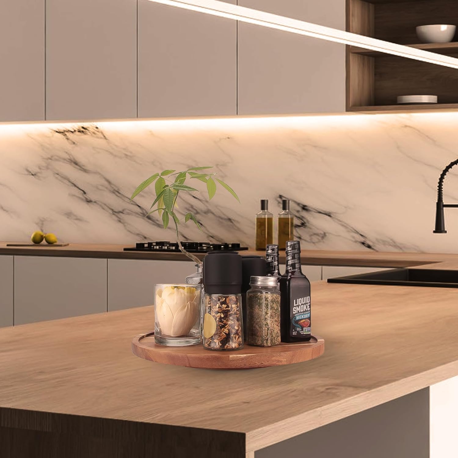 10 inch Wooden Lazy Susan Turntable, Acacia Wood Spinning Organizer for Dining Table, Cabinet, Fridge, countertop, Pantry