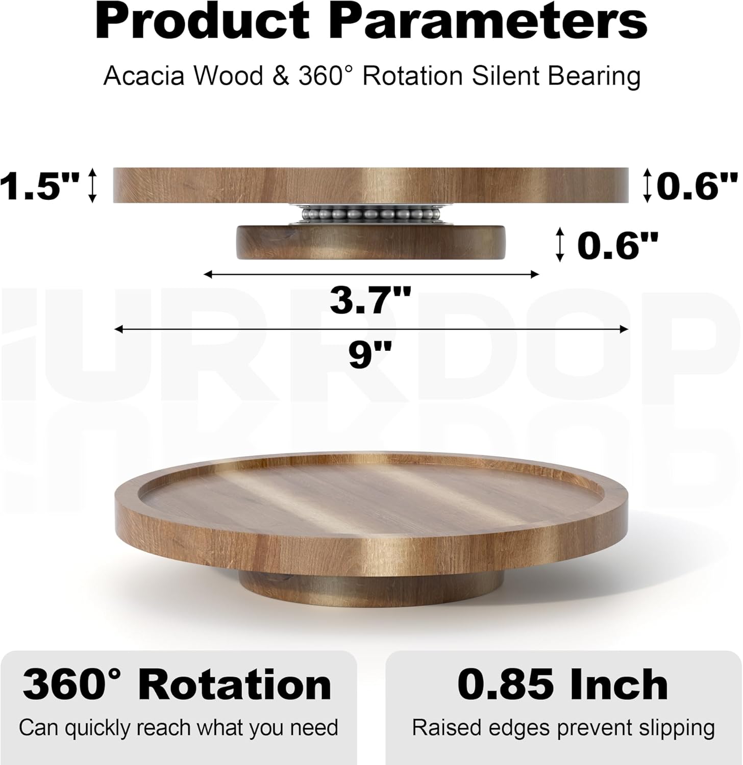9 inch Wooden Lazy Susan Turntable, Acacia Wood Spinning Organizer for Dining Table, Cabinet, Fridge, countertop, Pantry
