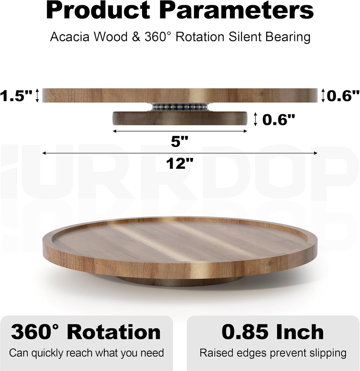 12 inch Wooden Lazy Susan Turntable for Cabinet, Acacia Lazy Susan Organizer for Table Top, Cabinet Fridge, Countertop, Pantry