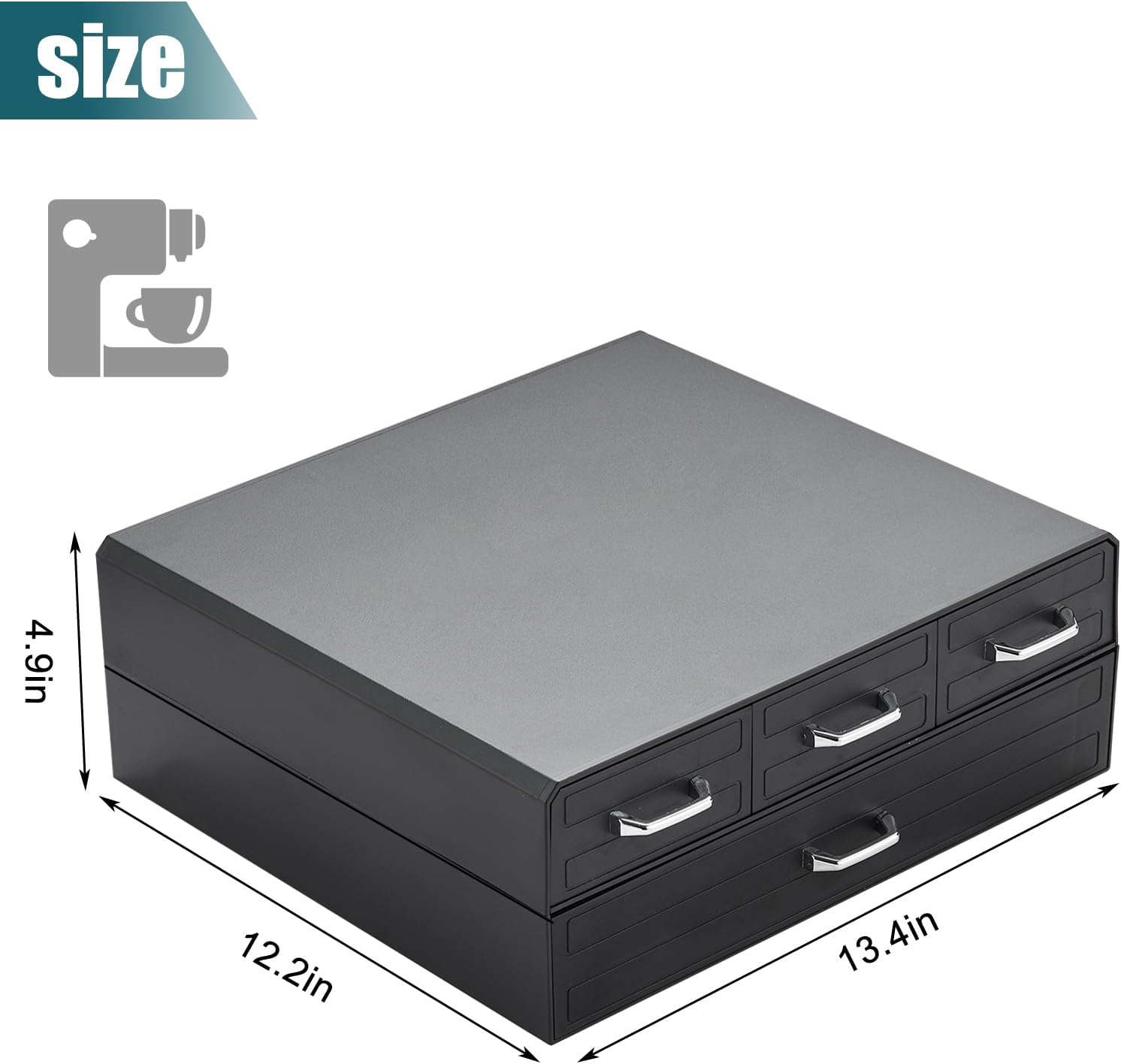 K Cup Holder Drawer 66/88 Pods Capacity, Four Drawers Design for Nespresso Pods Holder, Coffee Pod Holder Compatible With Keurig Pod Organizer&Nespresso/K-Cup/Vertuo Pod Holder, Black