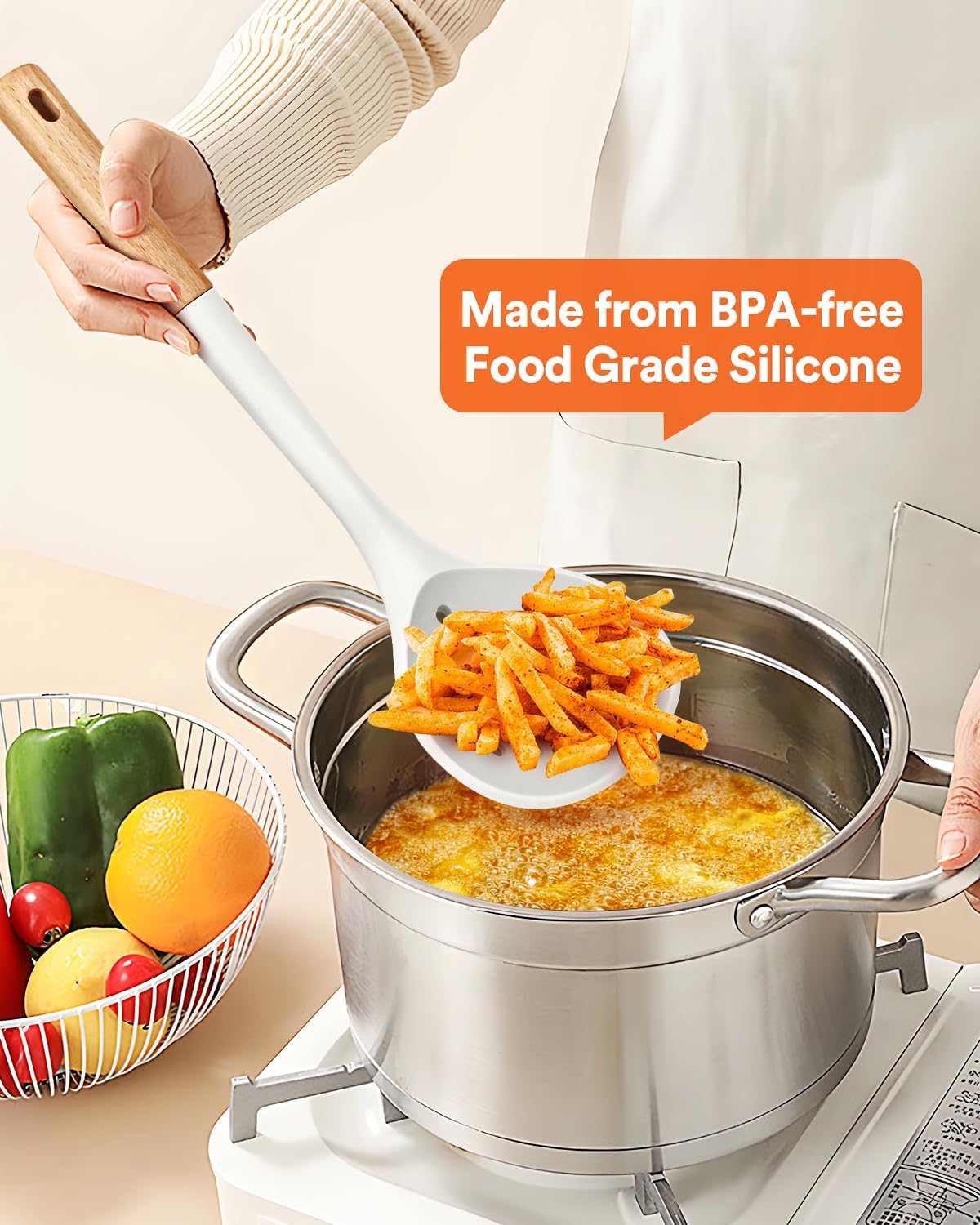 Kitchen Ladle Strainer, Large Slotted Spoon with High Heat Resistant BPA Free, Non Stick Cooking Skimmers For Draining & Frying, 13.2inch (Black & White)