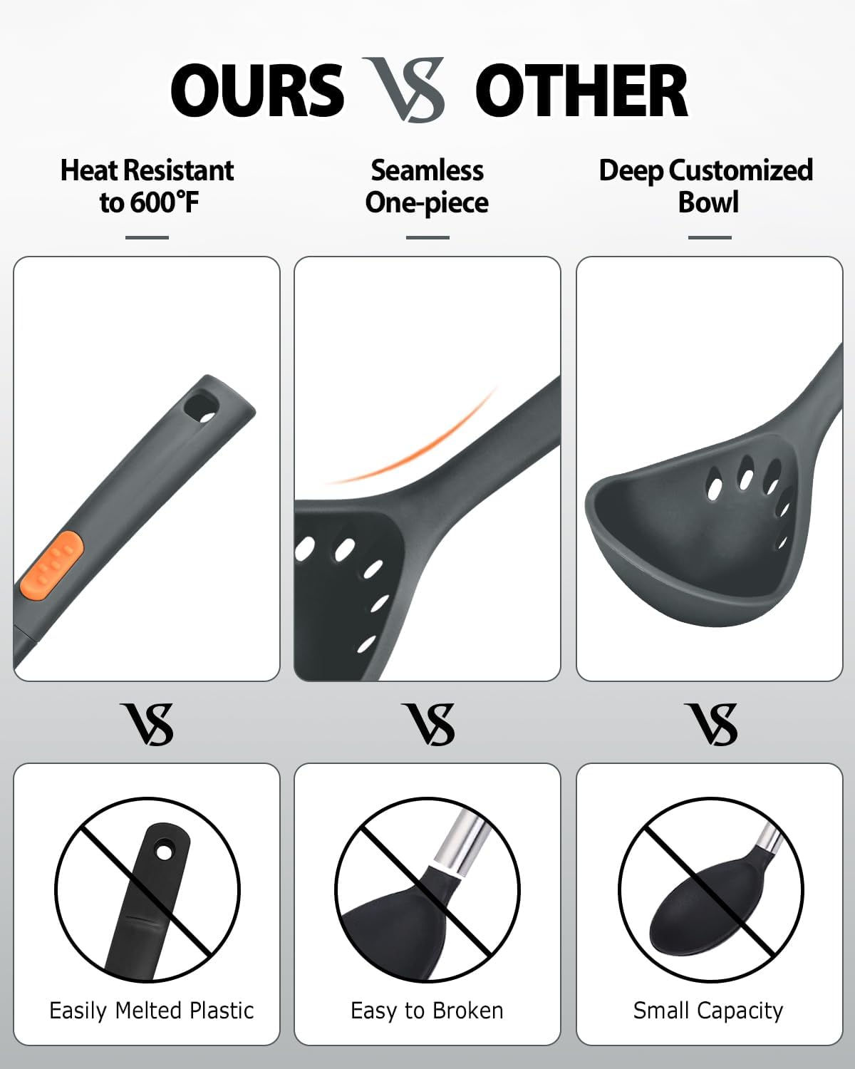 - Versatile Cooking and Serving: This comprehensive set of silicone kitchen utensils includes Pasta Fork and Ladle Spoon, providing all the essentials for preparing and serving a variety of dishes.