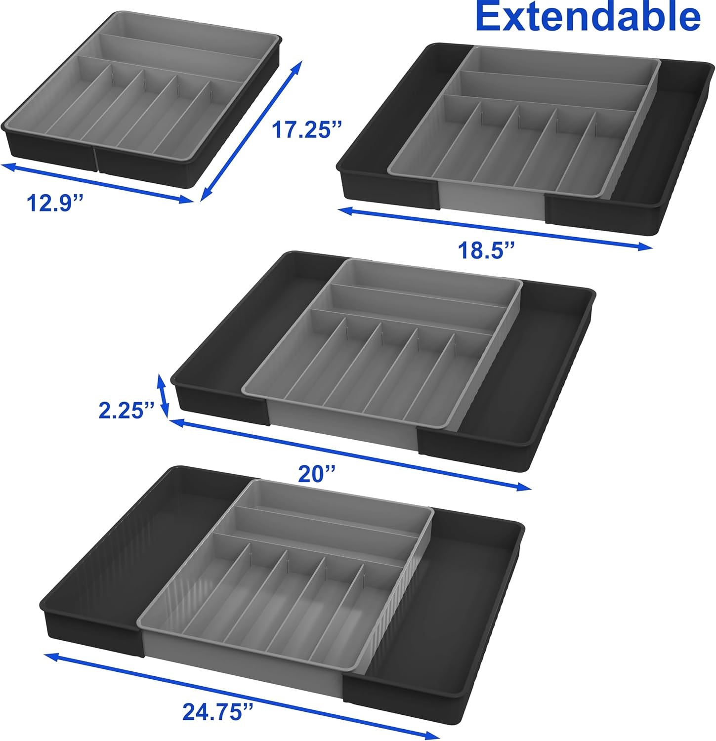 - Removable middle tray allows this organizer transform into 3 pieces. Thus it can be used in 3 different size of drawers