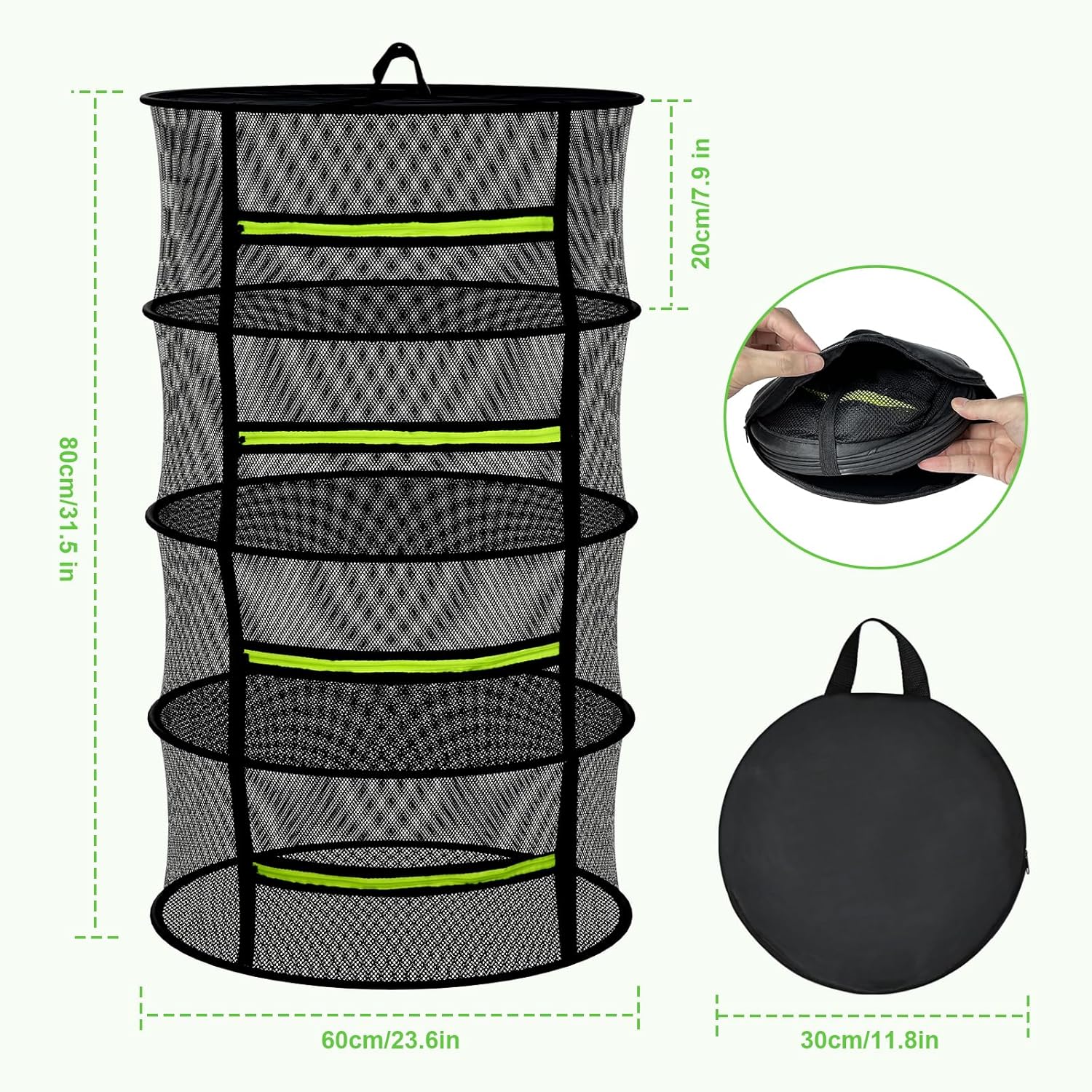 - Eco-Friendly and Durable: Herb drying rack is composed of nylon material, built-in steel wire ring for steadiness,weed drying rack top is waterproof fabric.Item Material:Durable non-toxic polyester mesh and steel enough to provide sturdy support. The drying net has a diameter of 23.6 IN. Each layer has room for about 3.3 LBS grams of moist/fresh weed