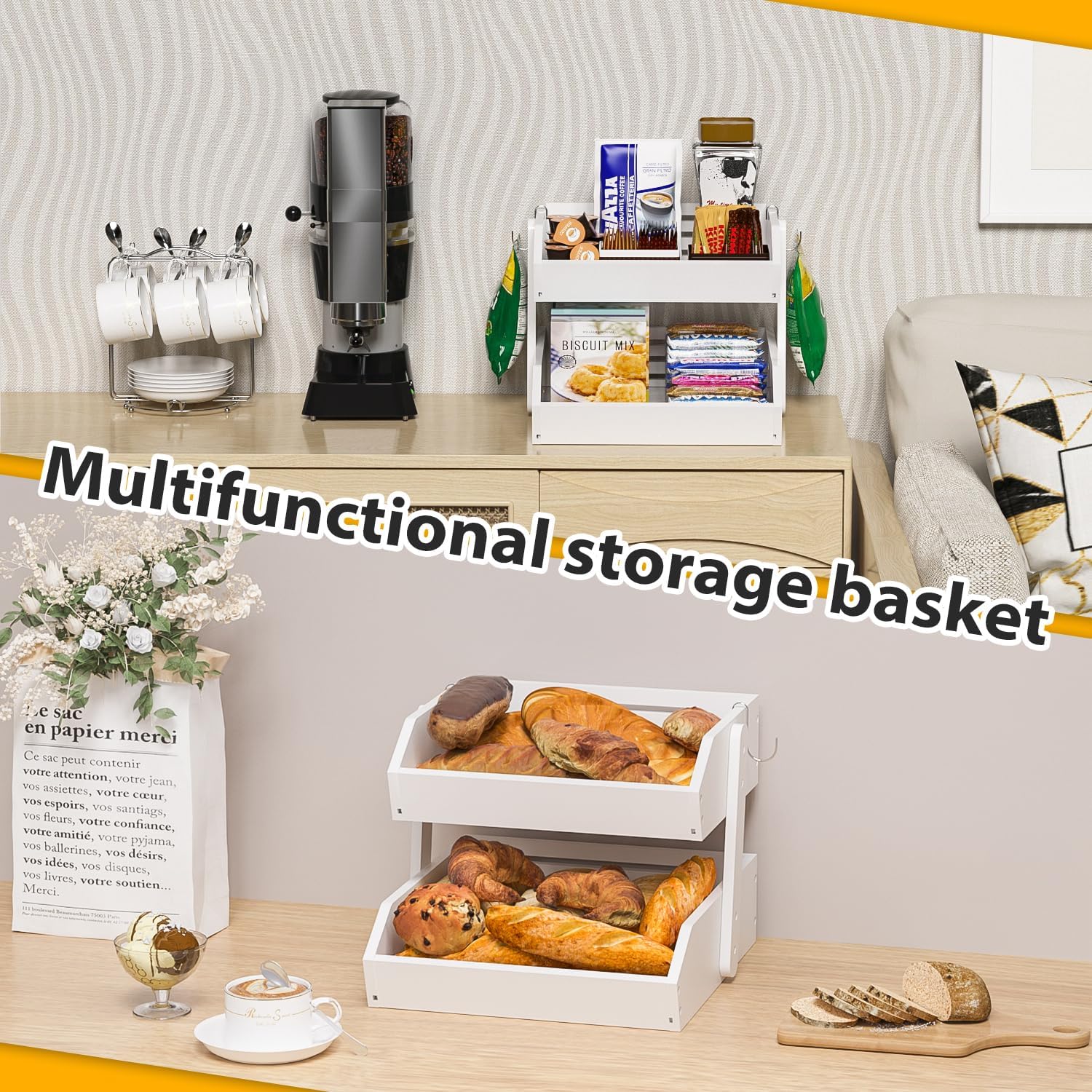 - LARGE CAPACITY: Gmtsl fruit basket for kitchen counter used as large wooden fruit bowl with 2 banana hooks, you can put fresh fruit,Bread,Snack in each tier. Different sizes(2 or 3 tiers) meets different vegetable storage needs (each basket can be used separately)