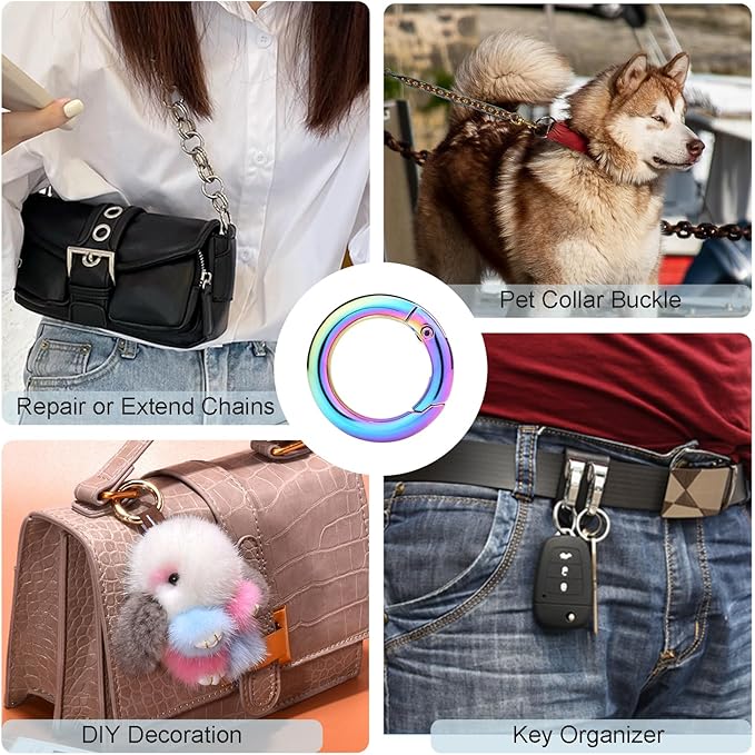 • Creative Matching: Round keyring clip can decorate and replace most items, such as key ring, keychain hardware, small dog leashes, dog collar tags, purse hardware, handbag shoulder bag strap, exercise band, bag tassel, keychain clip and outdoor paracord keychain lanyard or match with your desired hanging crafts or decorations, carabiner o ring is a great DIY accessory, can be given as a gift to a friend
