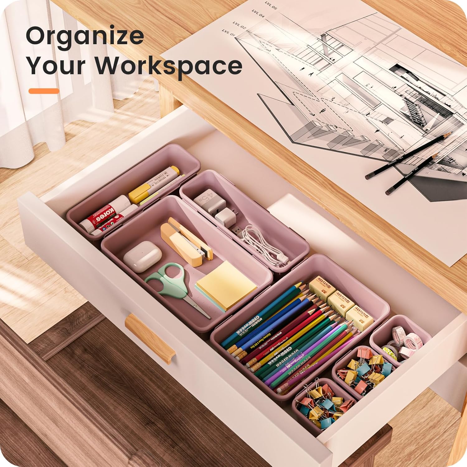 - ใEasy to Cleanใ ---- Our desk drawer storage bins are easy to wipe with a damp cloth and are perfect for keeping everything in its place. Convenient for use in your daily life, it makes everything look beautiful and better organized.