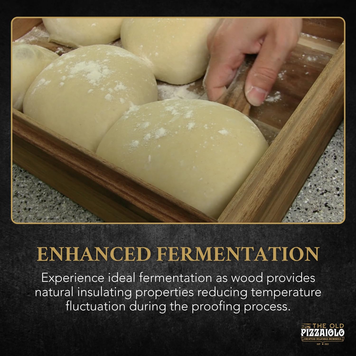 - ENHANCED FERMENTATION: Designed with an unfinished interior, our pizza proofing box enhances fermentation and moisture control beyond the standards of plastic containers, with the finished exterior enhancing the wood's natural insulation qualities, maintaining ideal temperatures for the perfect rise.