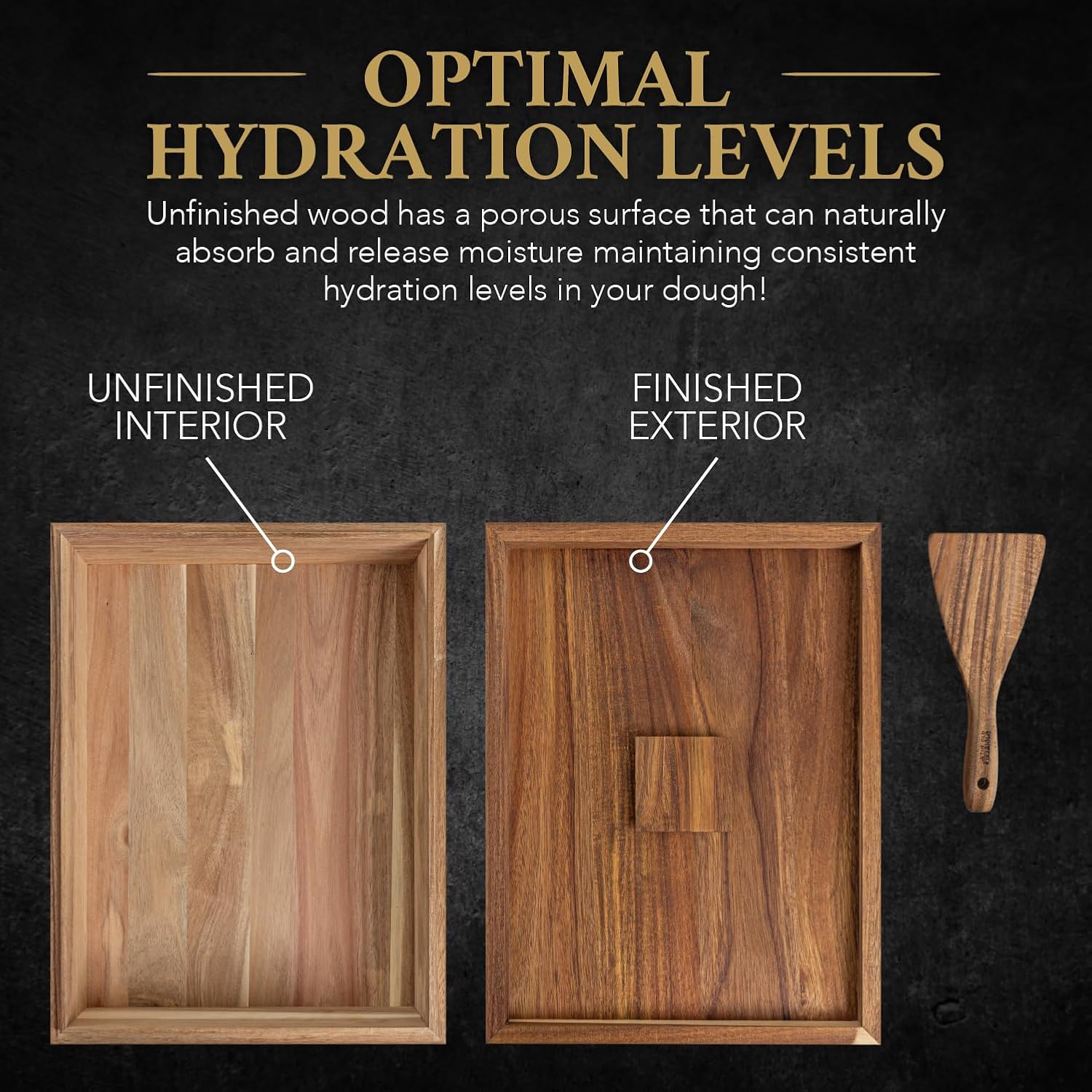 - ARTISANAL CRAFTSMANSHIP: Meticulously handcrafted from durable acacia wood, our proofing box boasts a modern design while offering superior water resistance. Say goodbye to plastic containers and embrace a stylish, durable solution for both home and professional pizza-making.