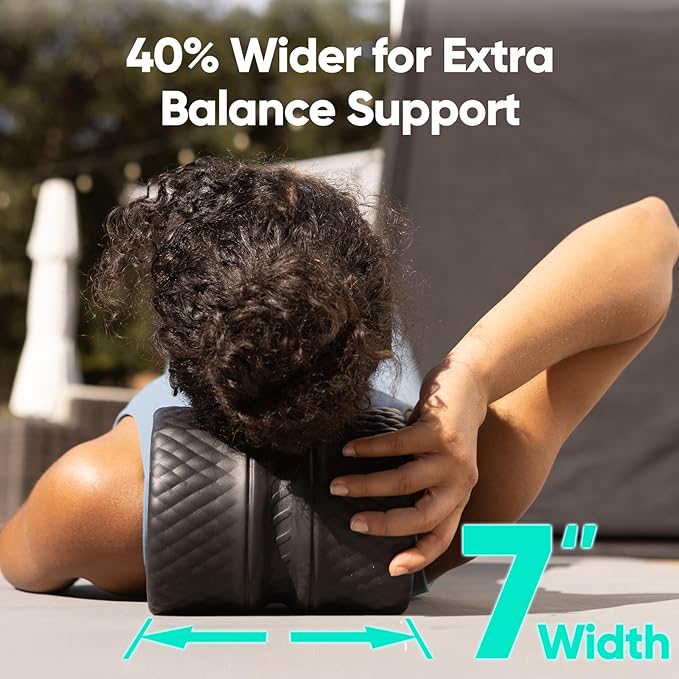 • ๐——๐˜‚๐—ฟ๐—ฎ๐—ฏ๐—น๐—ฒ ๐—ฎ๐—ป๐—ฑ ๐—ฅ๐—ฒ๐—น๐—ถ๐—ฎ๐—ฏ๐—น๐—ฒ: Our yoga wheel is built to last, with a sturdy ABS plastic core and can withstand an impressive weight capacity of up to 800 pounds. It is equipped with a 0.8-inch thick anti-slip foam cushion and plush EVA compression-sensitive padding, providing effortless rolling and soothing support. The unique 7-inch wide design of our back wheel ensures stability and balance, allowing you to use it with complete peace of mind.