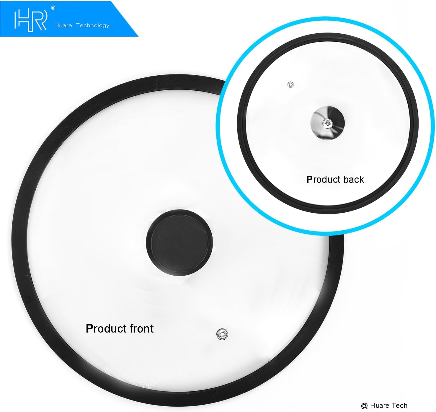 Silicon Glass Lid for Pot,Pan,Skillet Fits 11"(28CM) Cookware Silicon lid Dishwasher Safe, Replacement Lid Vented Tempered Glass with Heat Resistant Silicone Rim By HR Huare Technology,Black,1 Pack