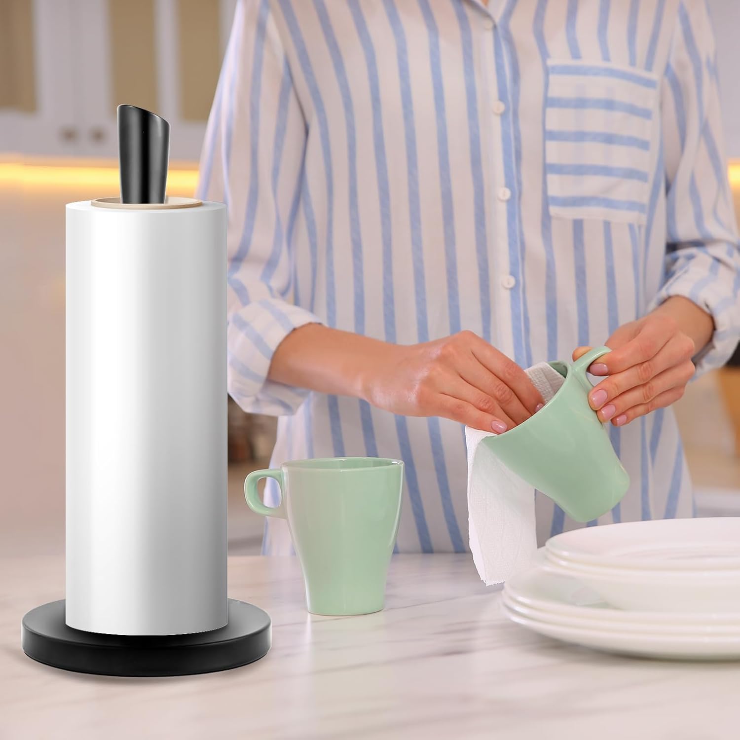 - Easy to Load & Tear: Freestanding paper towel holder accommodates any size or brand of paper towels. Loading the Holder is easy. Carefully engineered for tear roll paper. Heavy paper towel holder doesn't move when a paper towel is torn off