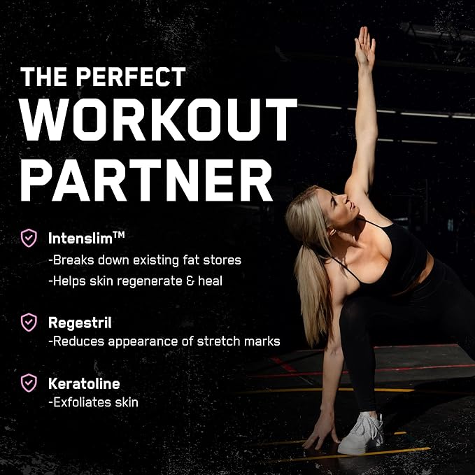 • Tone Your Glutes, Hips & Thighs: Intenslim, a patented fast-acting combination of stimulant-free topical caffeine and herbal and floral extracts, is designed to break down existing fat stores and help your skin regenerate. Buns of Steel doubles down on skin health with Regestril to prevent and reduce stretch marks and Keratoline to exfoliate skin.