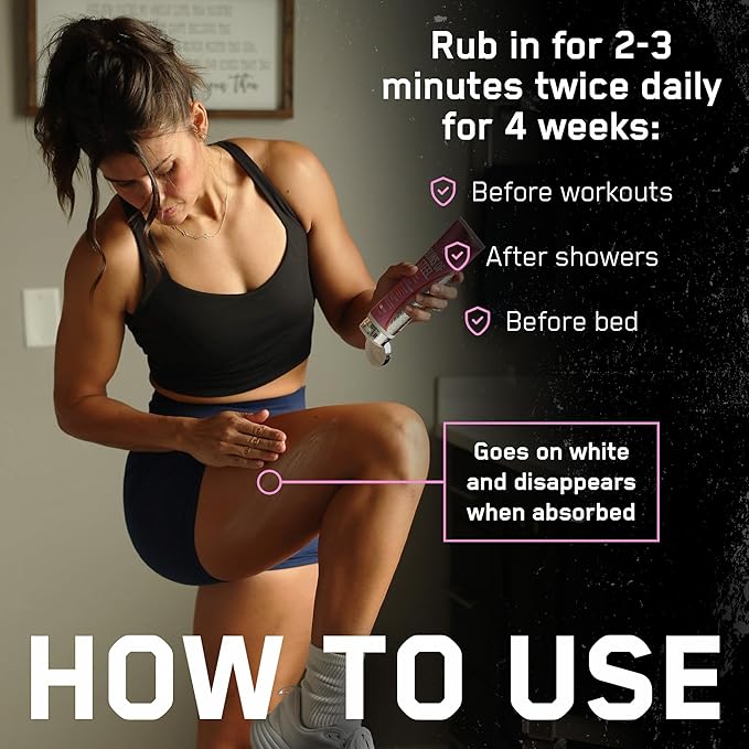 • Non-Greasy & Easy To Use: Our non-greasy cream goes on white and rubs in after 2-3 minutes. It’s non-oil-based so it won’t stain your favorite gym clothes. For optimal results, apply twice per day, 15 minutes before a workout, after showering, and/or before bed for at least 4 weeks.