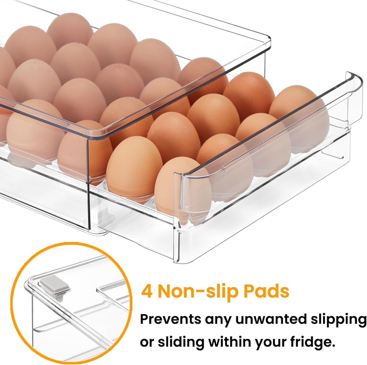 vacane 24 Egg Drawer for Fridge, Pull Out Egg Storage Container with Non-Slip Pads Refrigerator Organizer Bins Clear Egg Holder, Egg Tray-Bpa Free Egg Organizer