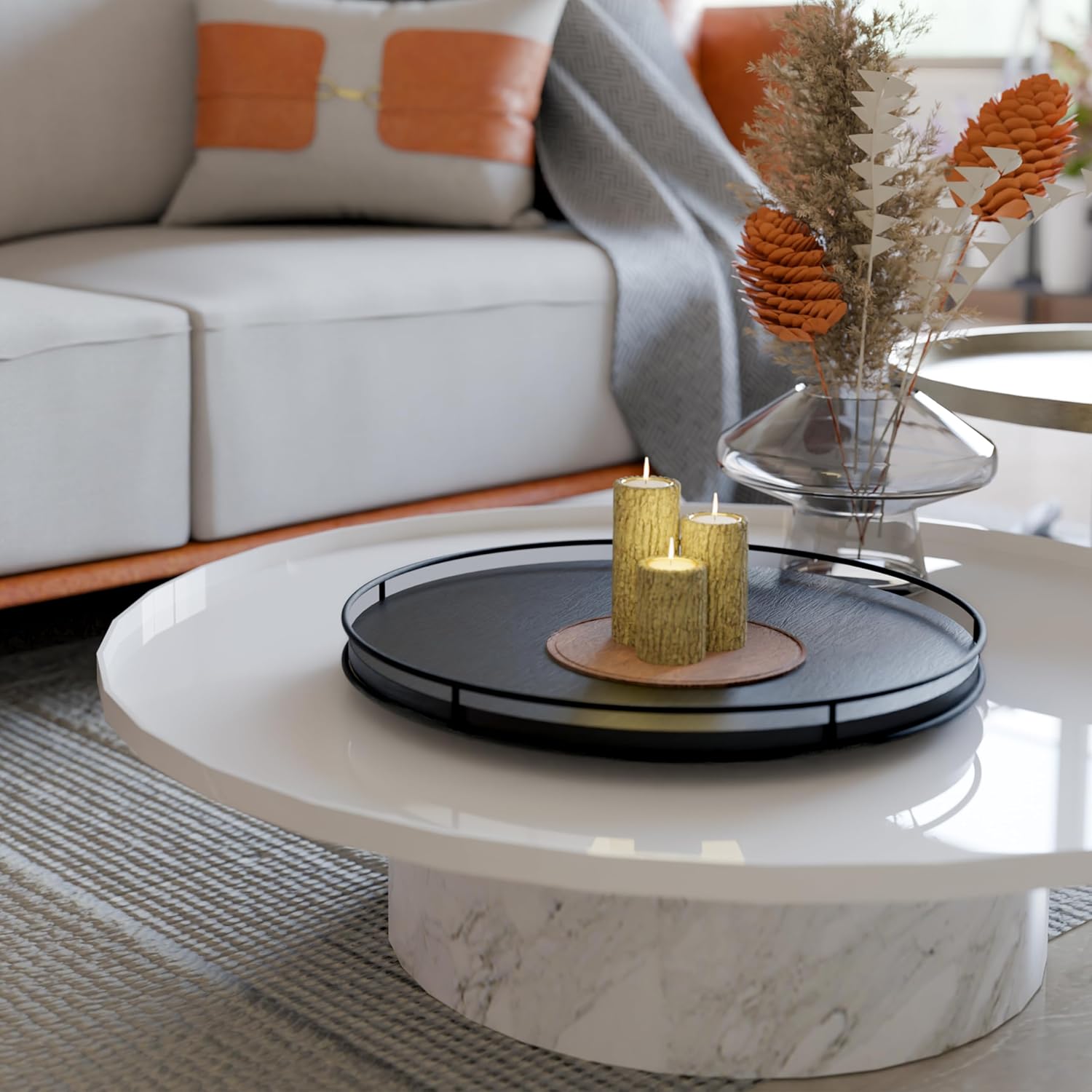 - Versatile and Spacious: With its expansive 18-inch diameter, this lazy Susan offers abundant storage space. It easily accommodates a wide range of items, making it a versatile addition to your kitchen, dining area, or living room. Whether it's organizing spices, displaying decorative pieces, setting up a delightful afternoon tea or coffee spread, or arranging an appealing charcuterie board, this lazy Susan has you covered.