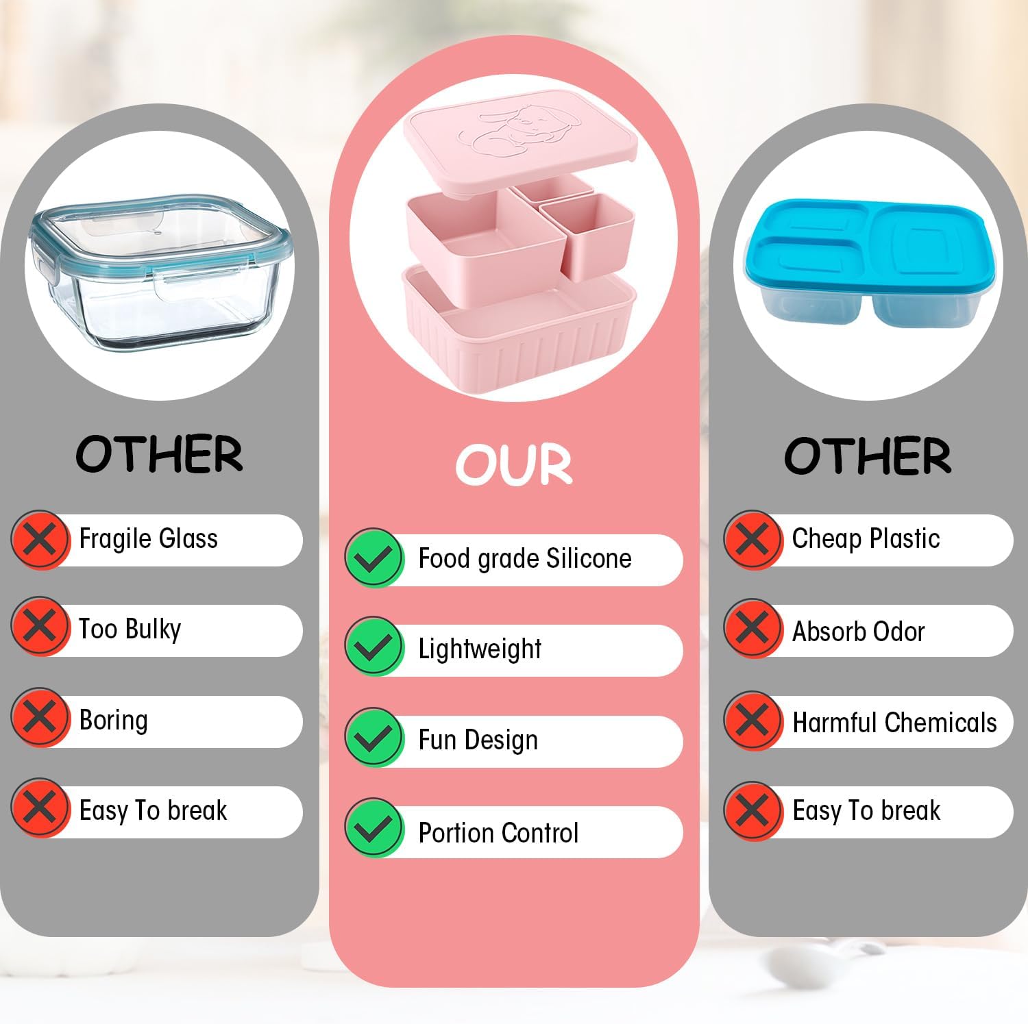 - Included Components : Three Removable Silicone Containers
