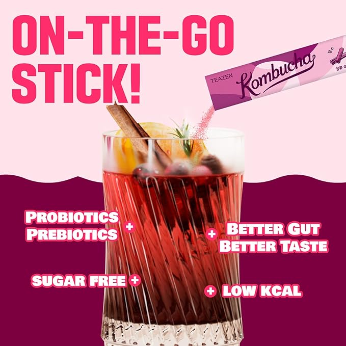 • 🔥TEAZEN Kombucha, with just 15kcal per stick, is a Sugar-Free, Alcohol-Free Probiotic tea. It contains both Prebiotics and Probiotics and has low caffeine content, making it suitable for everyone to enjoy. Gather your family and indulge in TEAZEN Kombucha together.