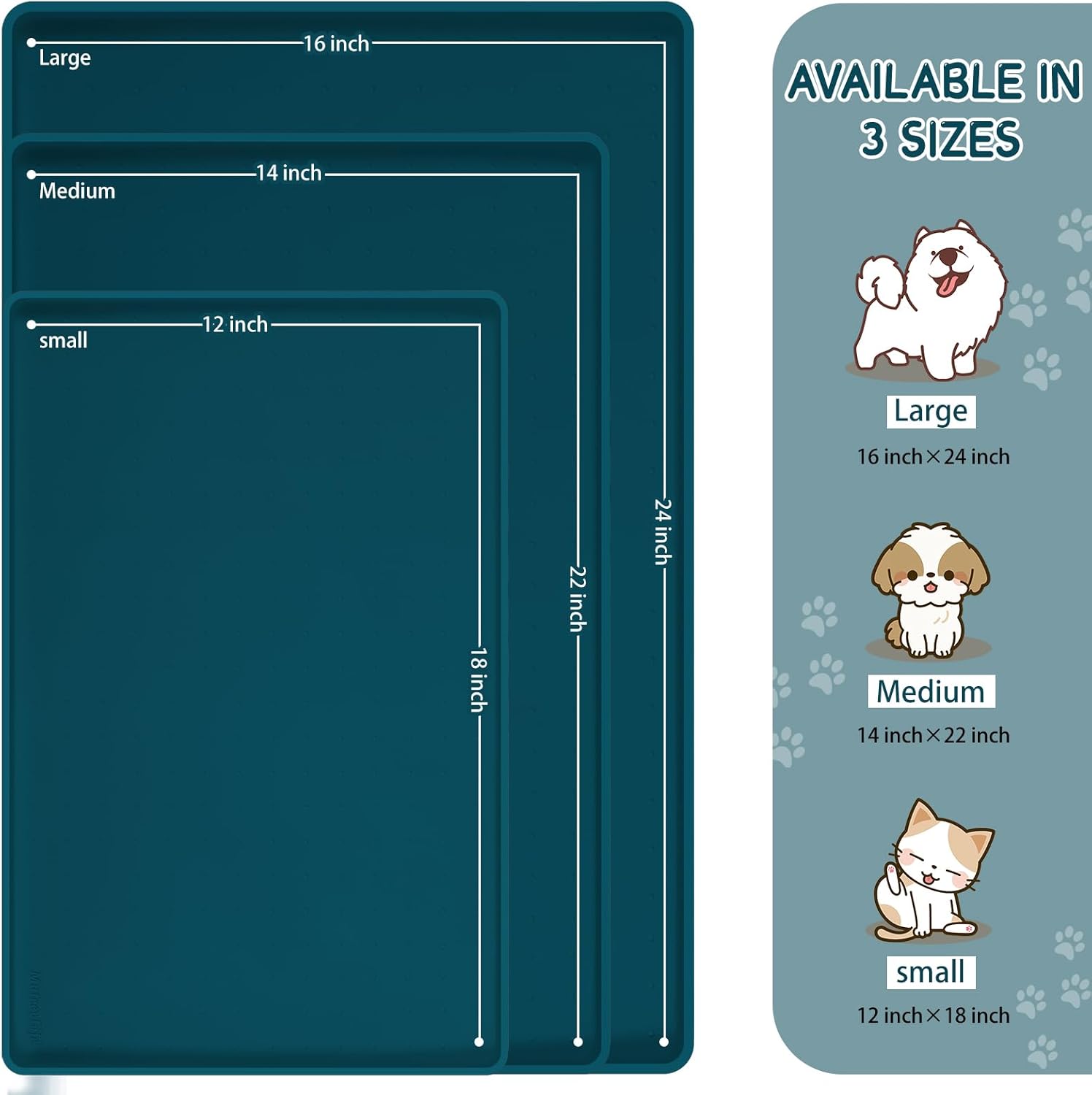 - Multiple Sizes & After-Sales: Service Our cat feeding mat and dog dish mats for floors waterproof come in 3 sizes and 8 colors, making them ideal for pets of all sizes. The dog food trays for floors can also be used as a rubber shoe mat tray, under sink mat, under sink tray, cat litter mat and litter box mat. If you have a chewer, please supervise him/her while using the cat bowl mat and dog bowl mat waterproof. Any issues, please feel free to contact us