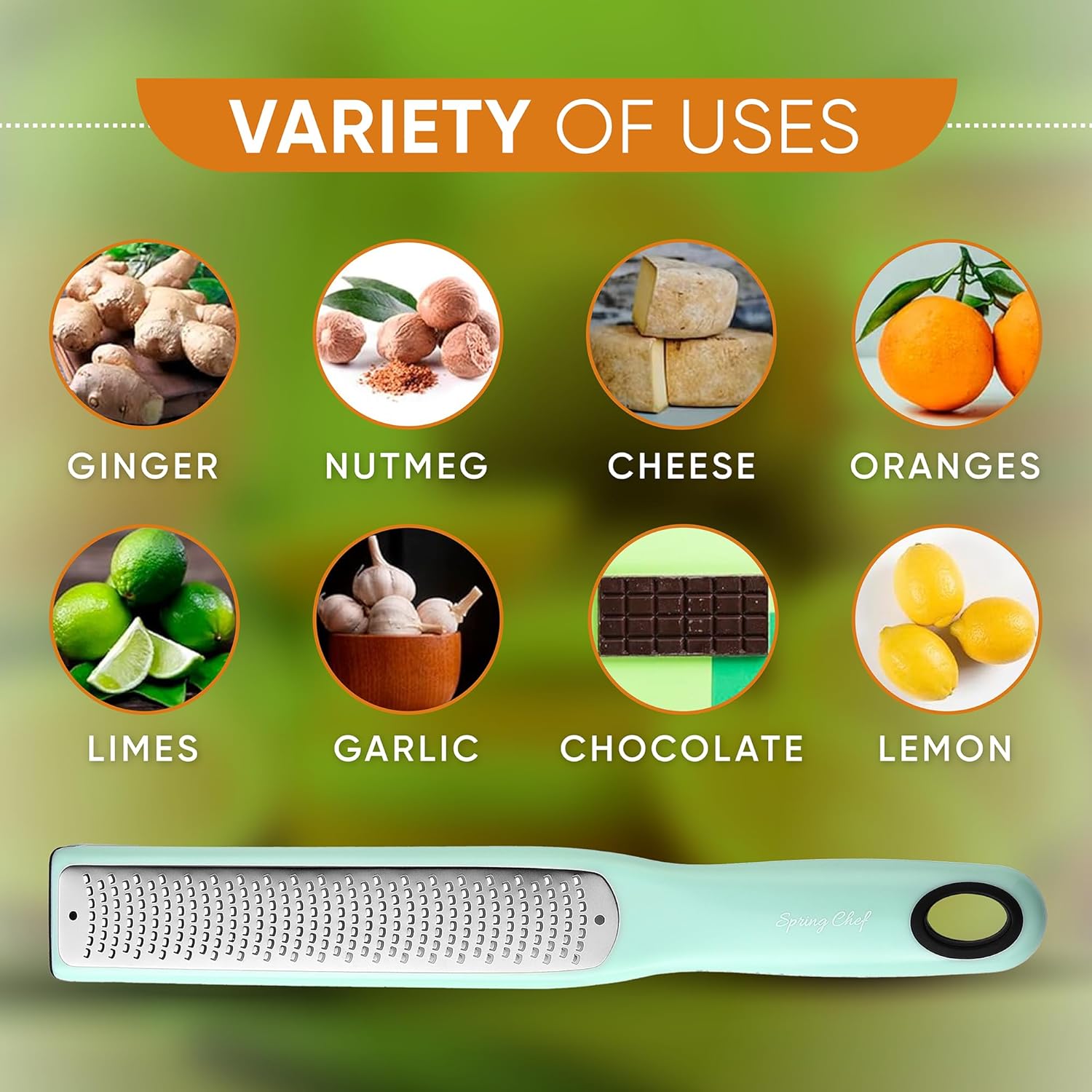 Spring Chef Premium Lemon Zester Grater with Handle - Fruit, Garlic, Lime, Orange, Nutmeg, Garlic Grater - Heavy Duty Kitchen Tool - Stainless Steel Citrus Zester with Blade Cover - Fine Shred, Mint