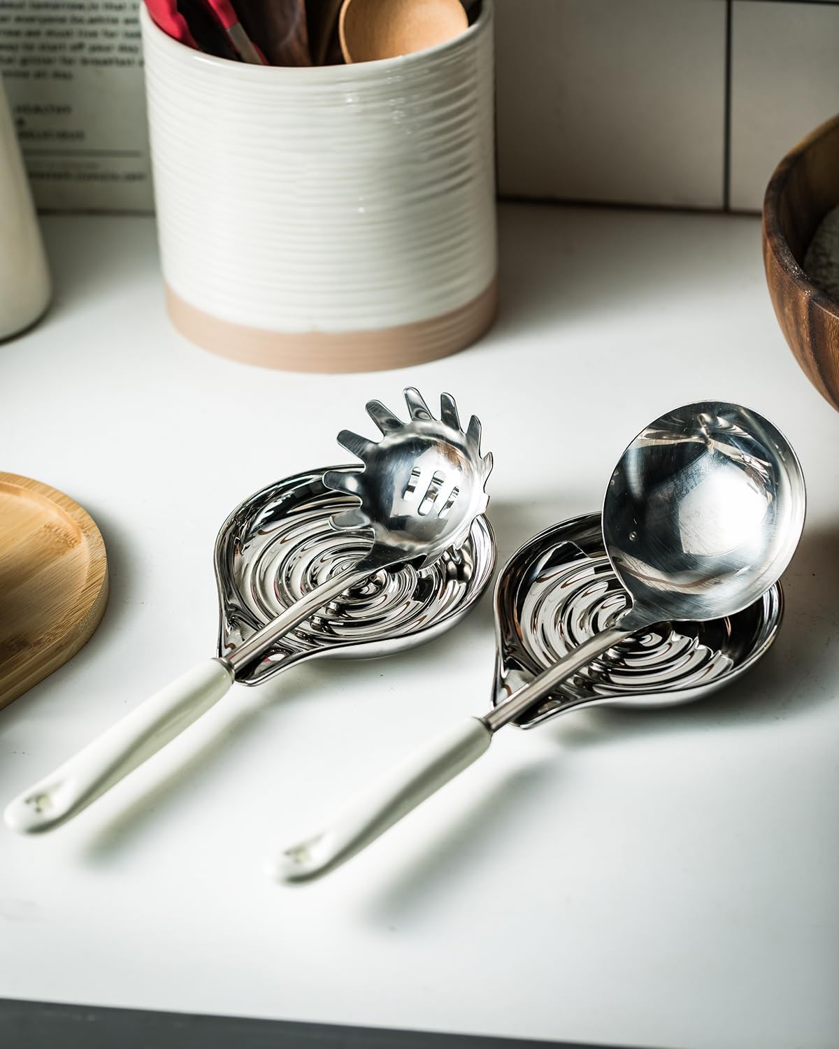 - Stable Base: The wide and stable base ensures that your utensils stay put. No more accidental spills or messy countertops – our ceramic spoon rest offers a secure and stylish place for your cooking spoons
