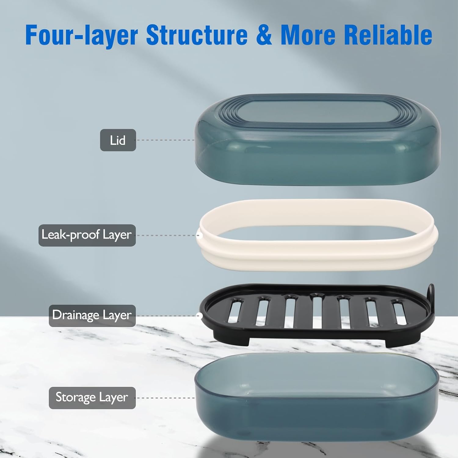 - Four-layer Structure & More Reliable: Our soap bar holder has an innovative four-layer design, with one more sealing connection layer than other bar soap travel container, more reliable structure and fine manufacturing process, with better fit and better sealing.