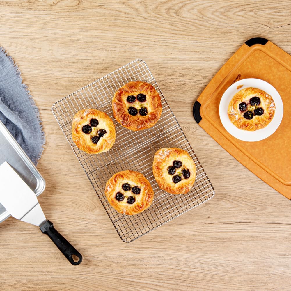 - LONG-LASTING USE: Made from 304 stainless steel, this cooling rack won't corrode and withstands several uses. Oven-ready up to 575F to be used for baking or broiling!