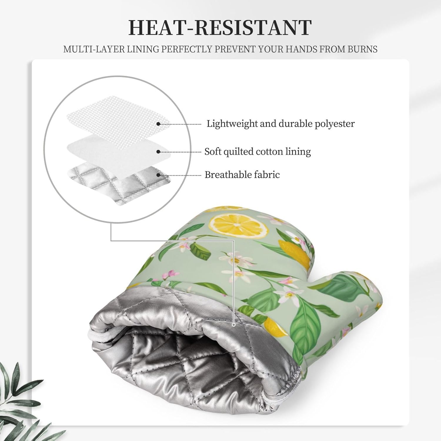 - BETTER GRIP: Kitchen oven gloves are made of silicone, which is naturally non-slip to give you a better grip when cooking or moving pans around. The silicone is designed with a unique honeycomb texture pattern that helps you tightly grip pans, baking sheets, spatulas, dinner plates and more. The yellow lemon silicone oven mitts fit your hands perfectly.